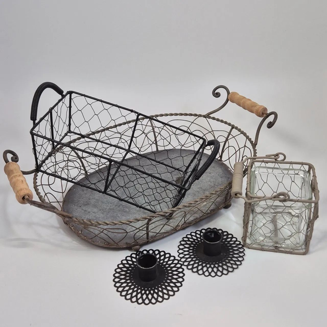 Olika korgar i metall. Största L.39cm