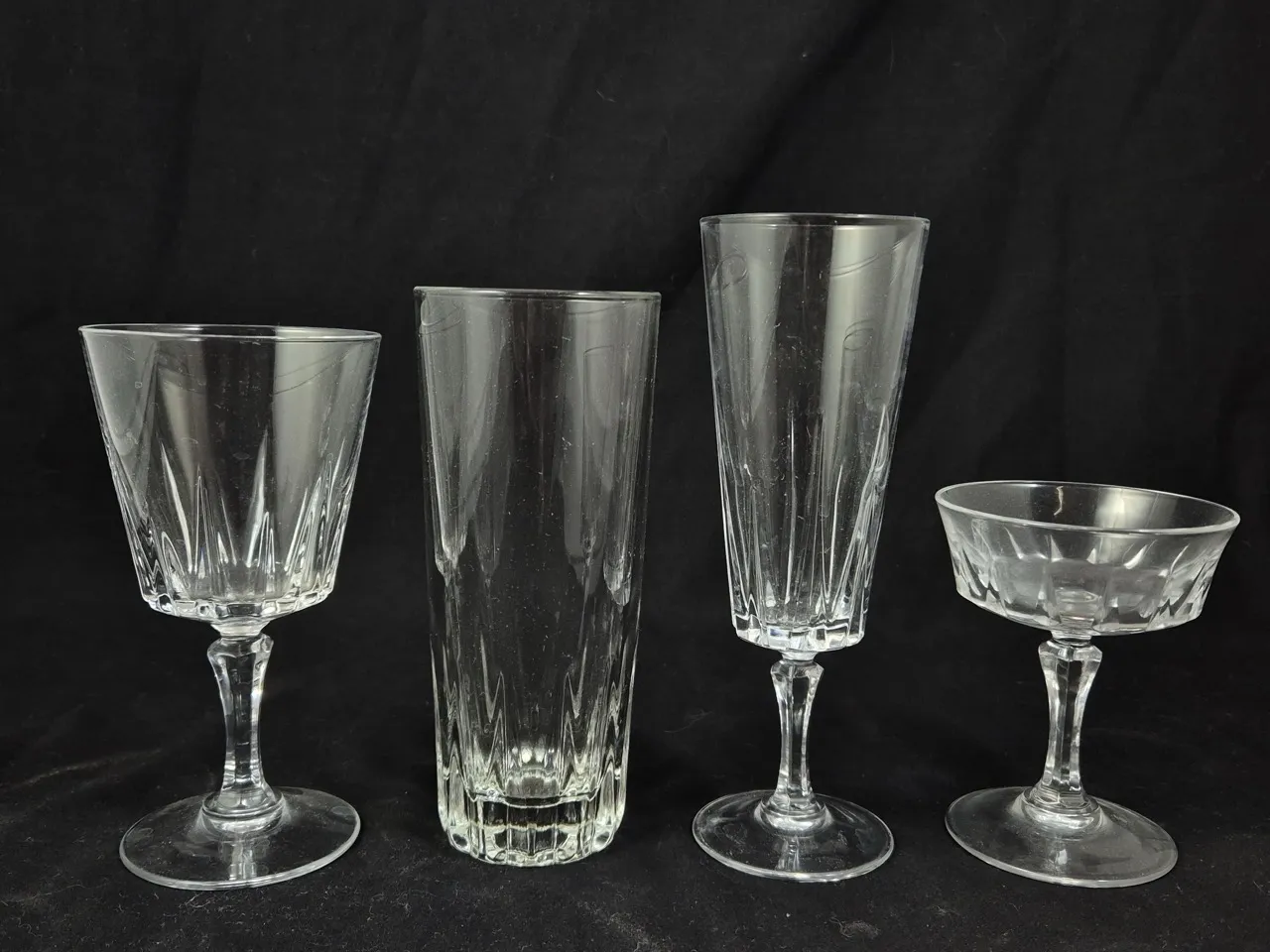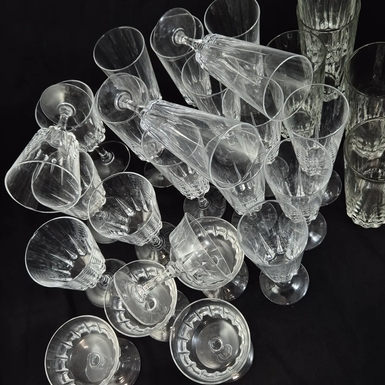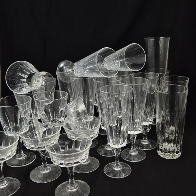 5st grogglas, 13st champagneglas , 4st vinglas, 5st likörglas . Allt i plingig kristall