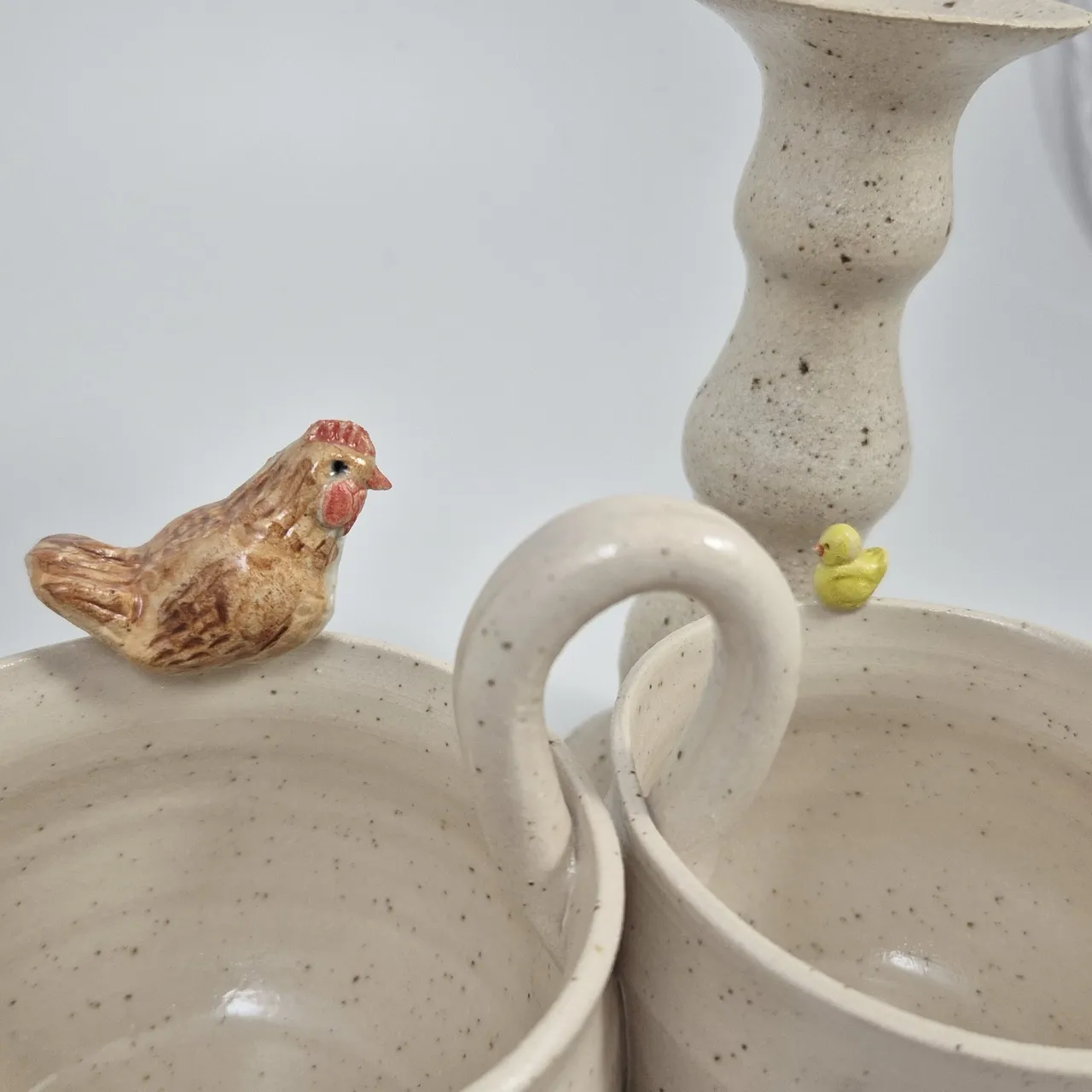 Liten tupp i gjutjärn H. 5.5cm , ljusstake Wall, dubbelkruka med höna