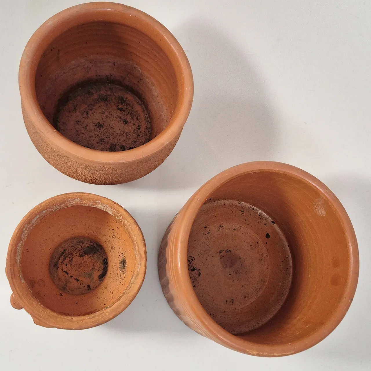Kruka sömntutan, 2st övriga terrakottakrukor . Största D.17.5cm