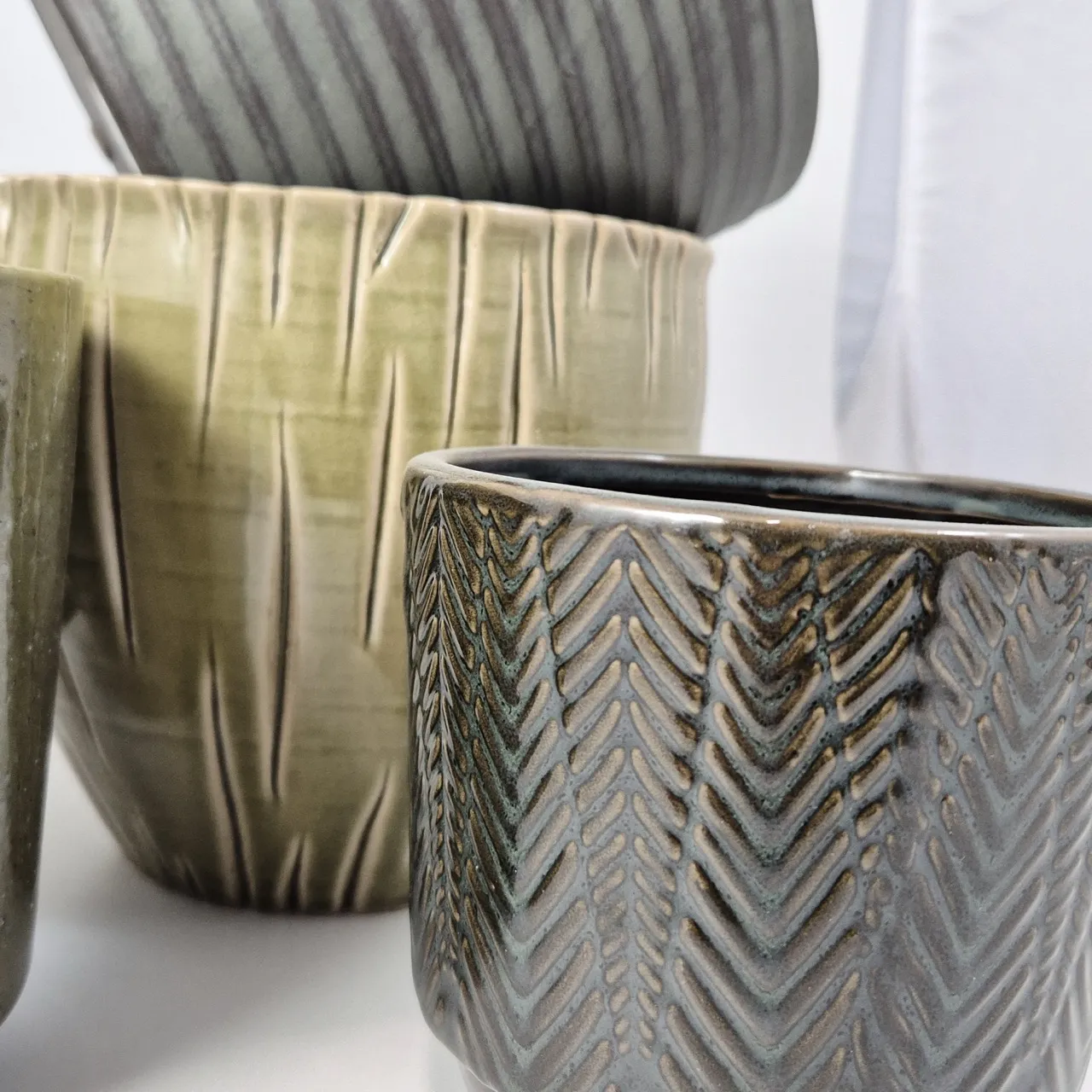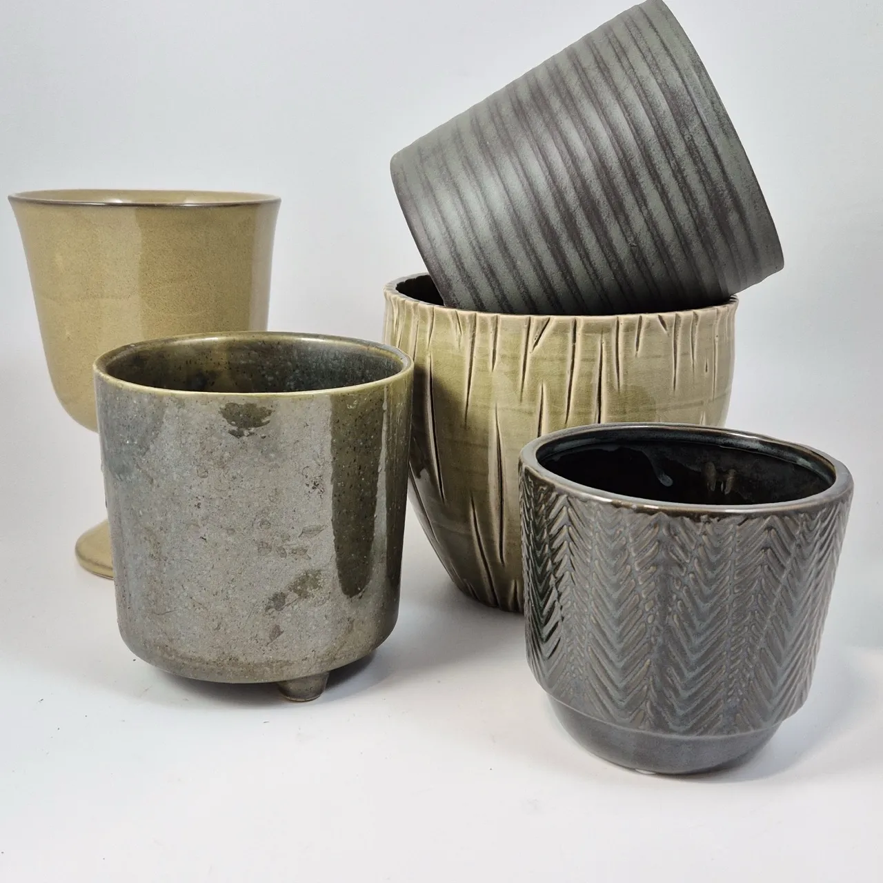 Krukor i gröna nyanser. 5st Den på fot H.20cm