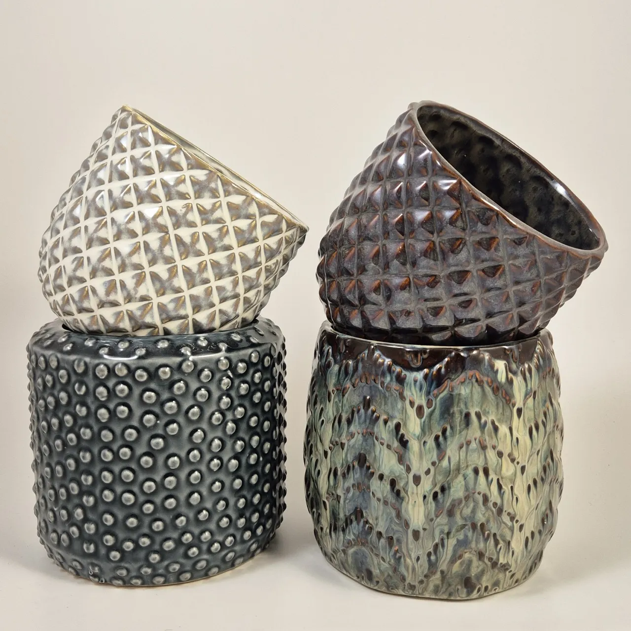 4st fina krukor i bra storlekar. Största D. 13cm