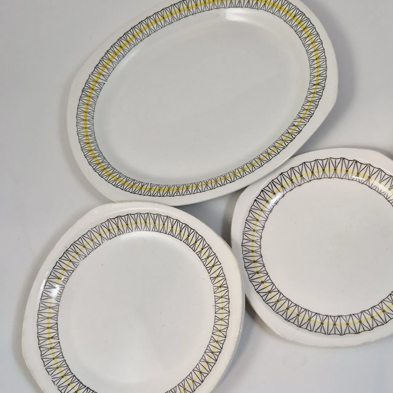 Dessertskålar 3st krackityr, 1st uppläggningsfat, 3st förrättstallrikar, 1st assiett.