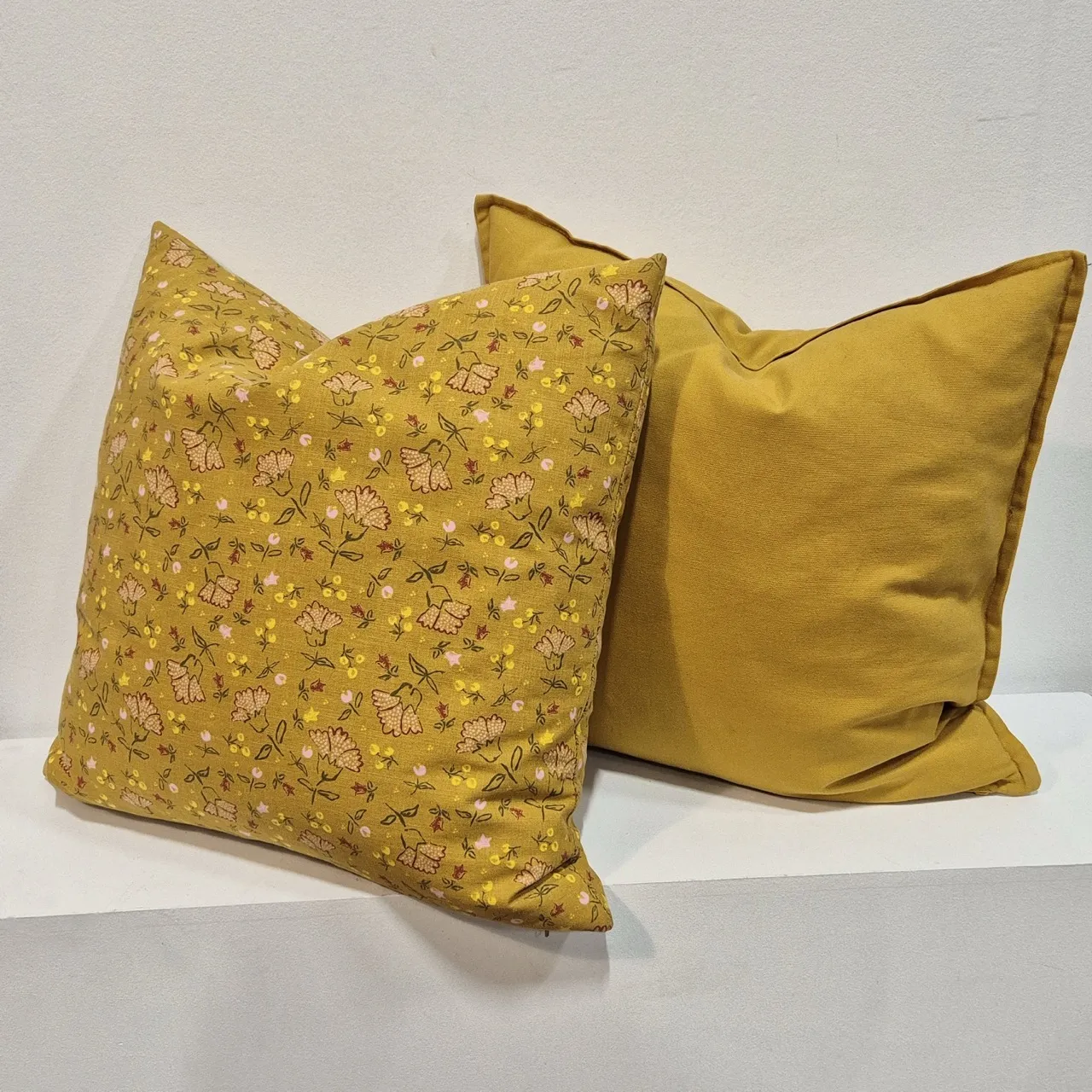 2st kuddar med innerkudde av dun . 50x50cm . Lite varmare gul än på bilderna. Fräscha