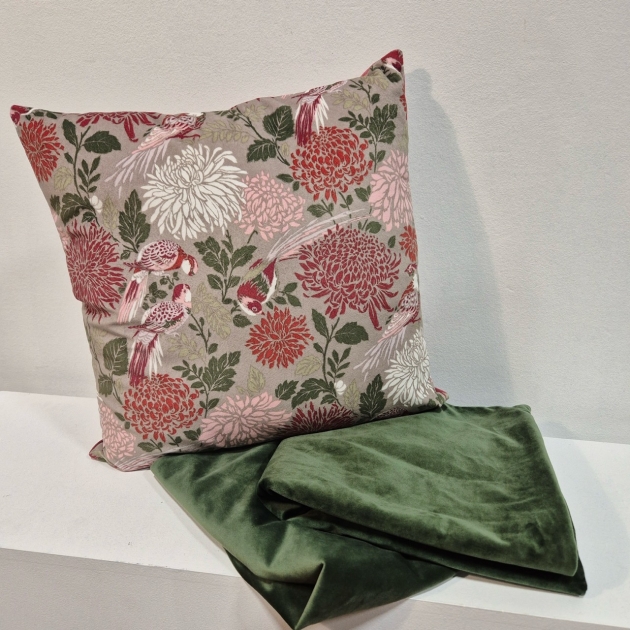 Kudde med blommor 50x50cm, 2st kuddfodral i grön sammet 60x60cm