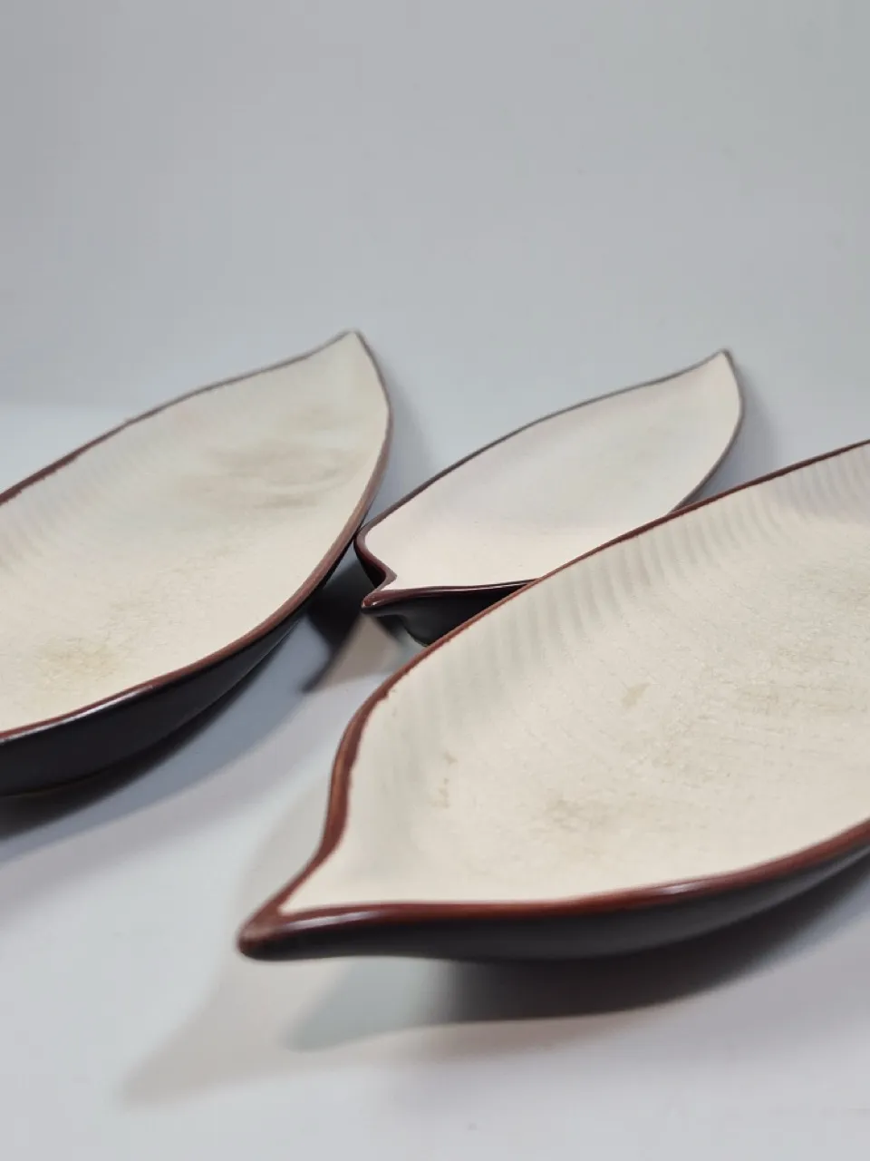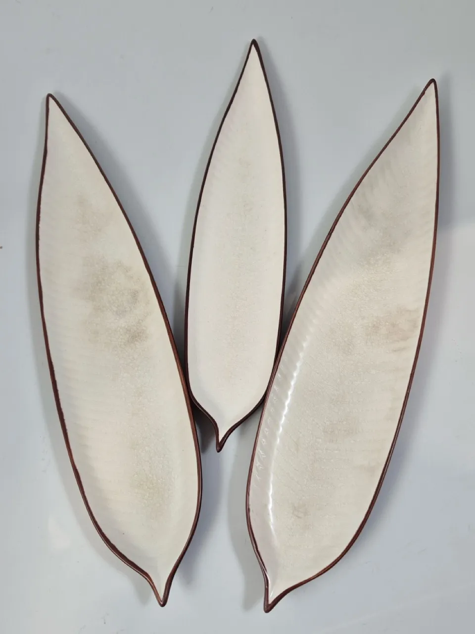 3st långa fat med bladmotiv. L. 47cm