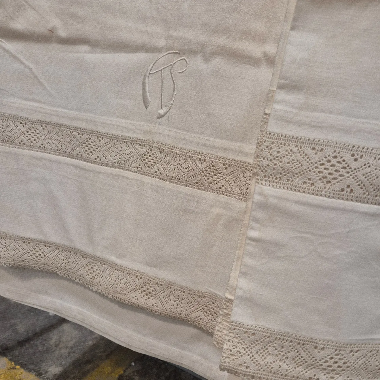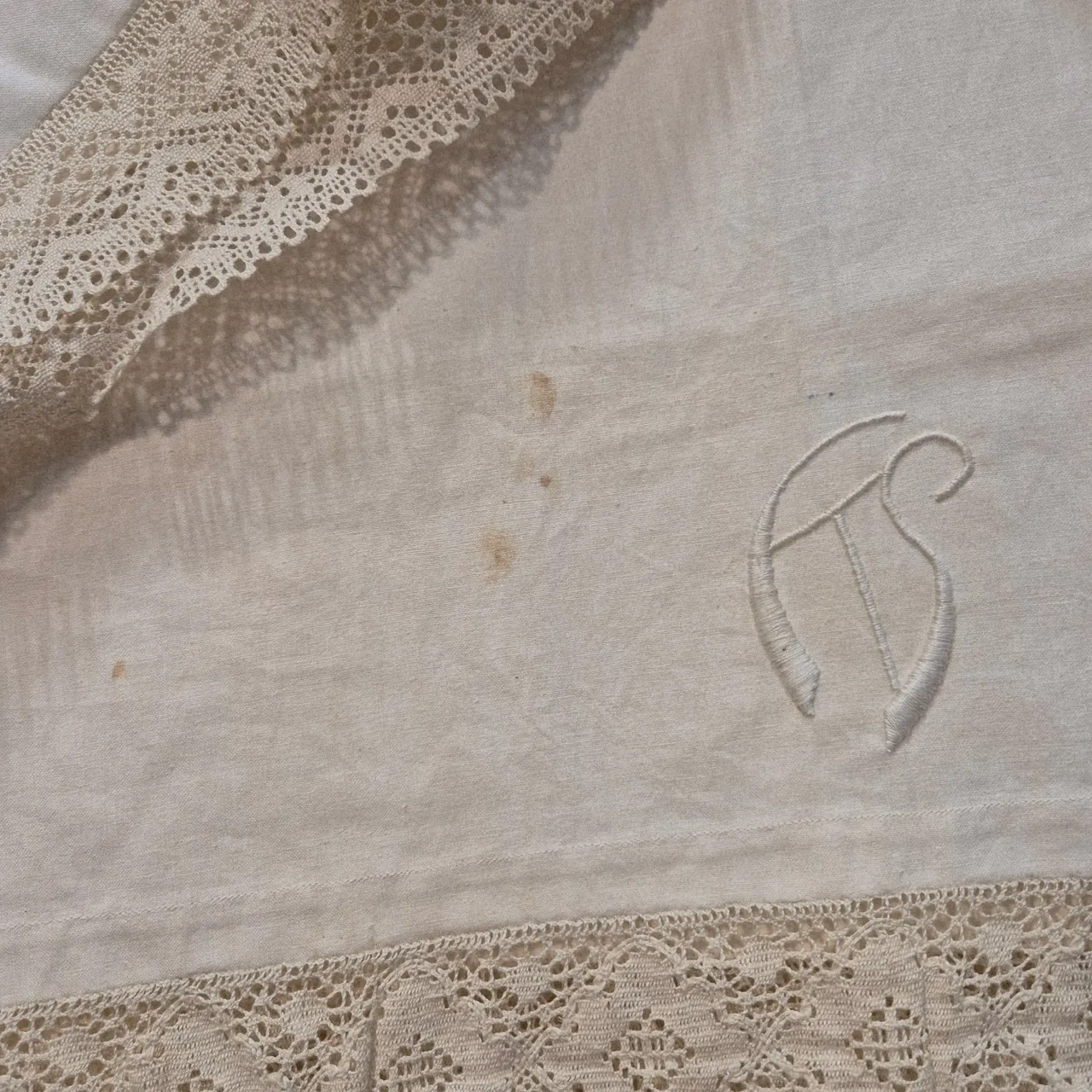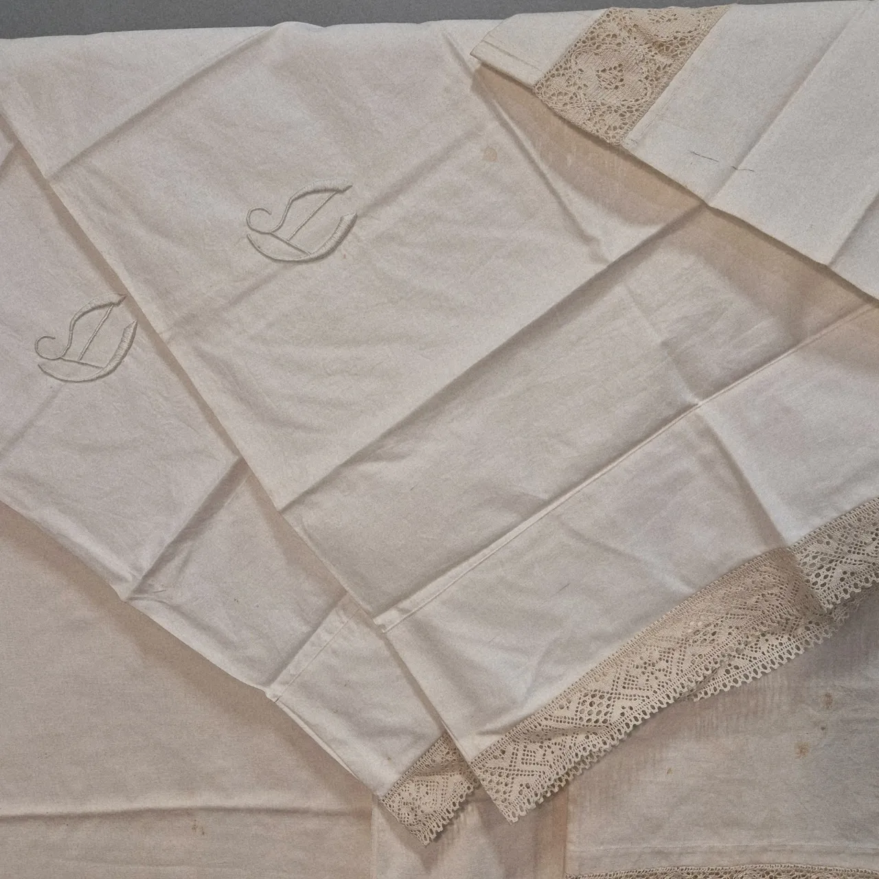 Lakan bomull. med broderi och spets
