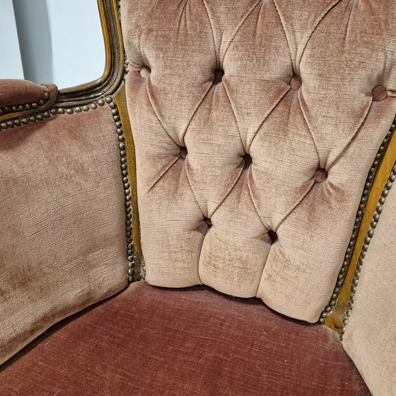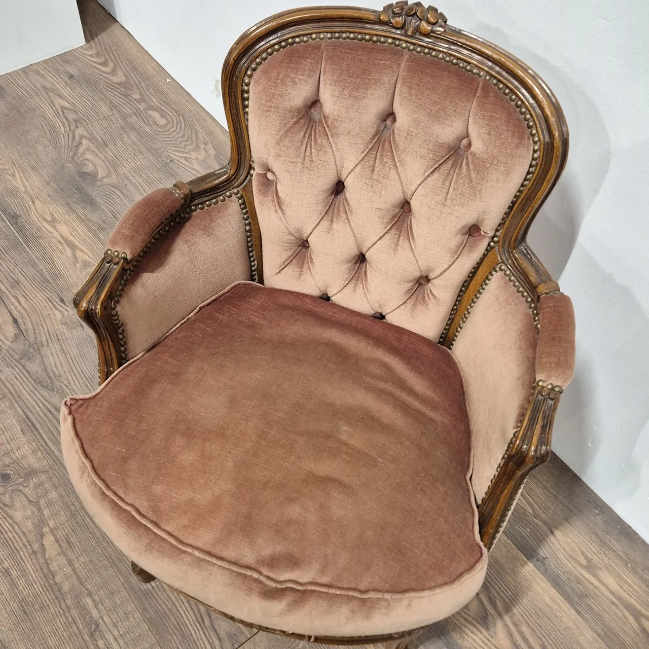 Liten nätt fåtölj, oväntat bekväm för en person på 155cm . Totalhöjd 79cm