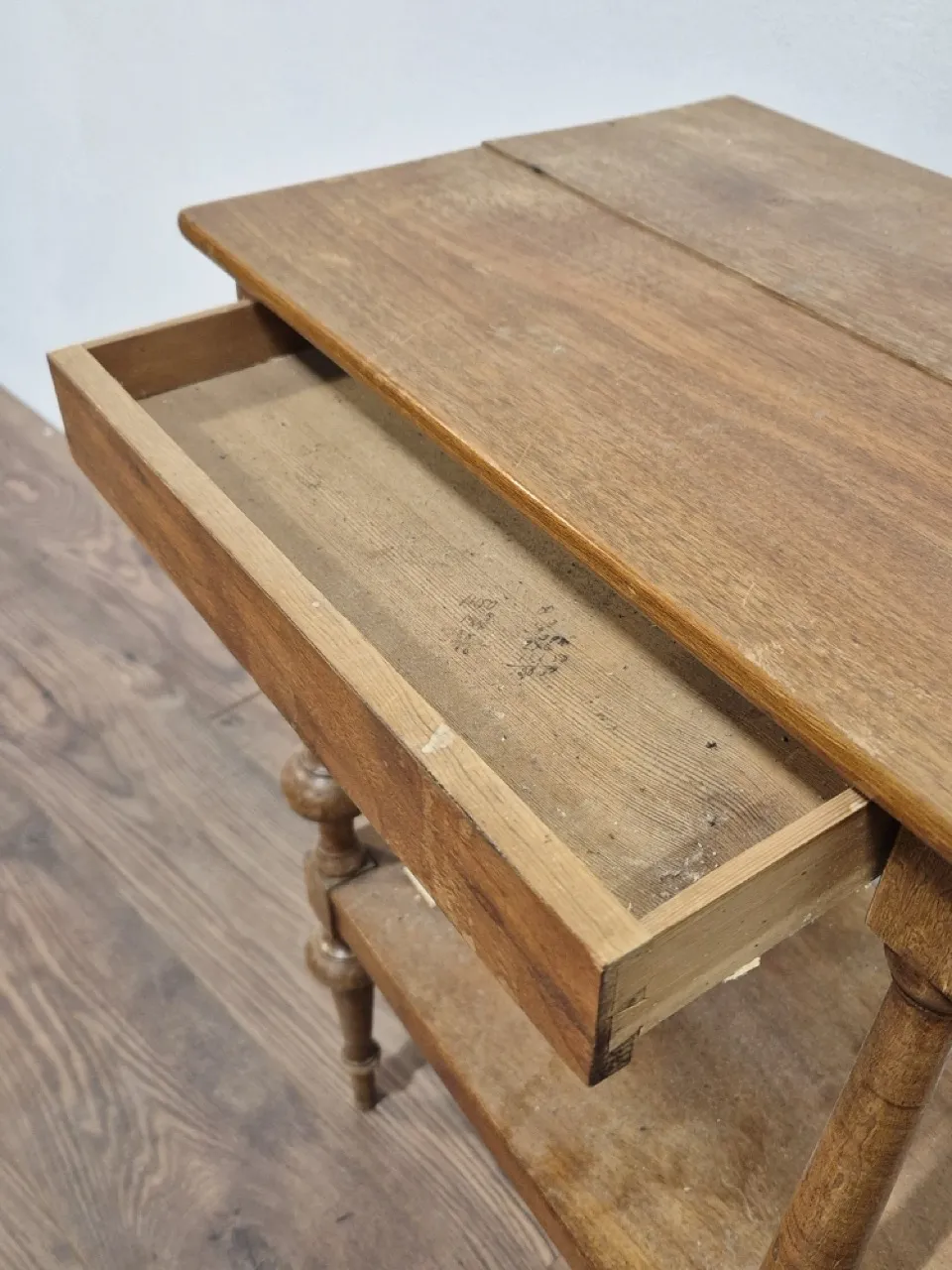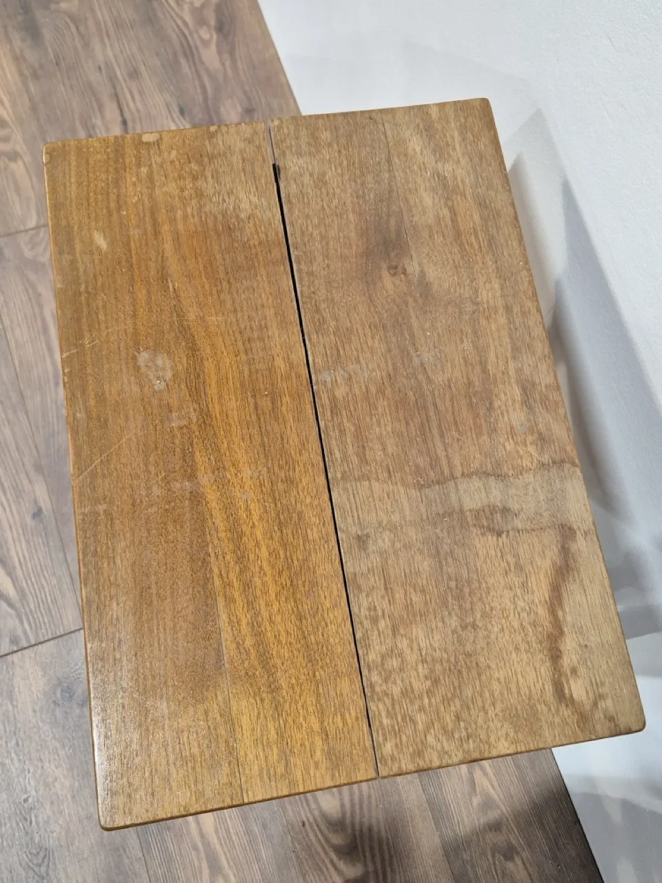 Litet bord. Översta skivan är sprucken/sitter löst. Låda under skivan H.72cm 47x34cm