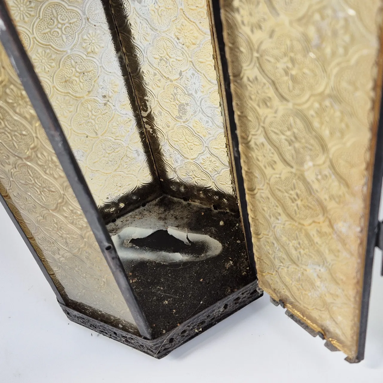 Ljuslykta med gult glas H.39cm. Sunkig inuti
