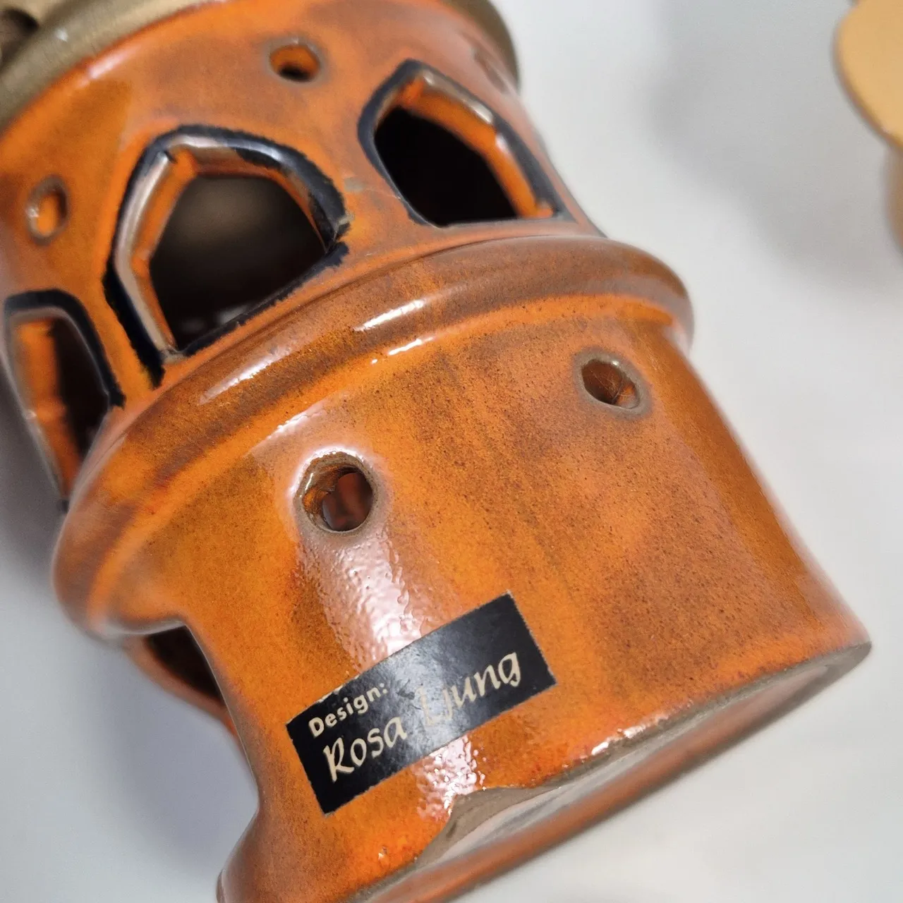 Ljuslykta rosa ljung, mindre skavanker/nagg undertill. H. 17.5cm