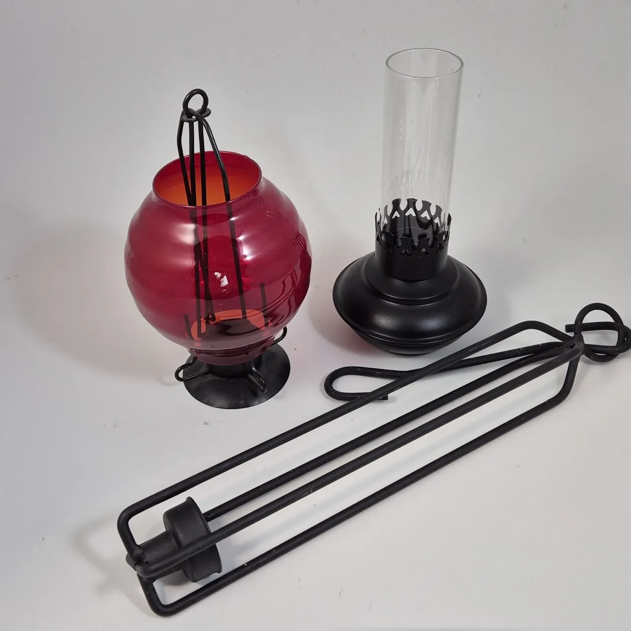 3st olika ljuslyktor . Höjd på den röda 23cm.