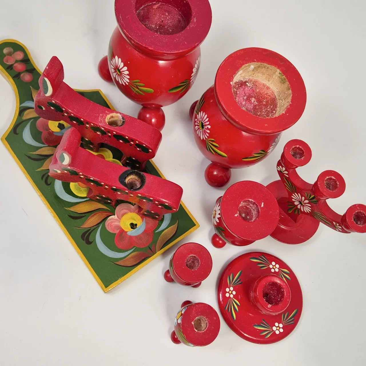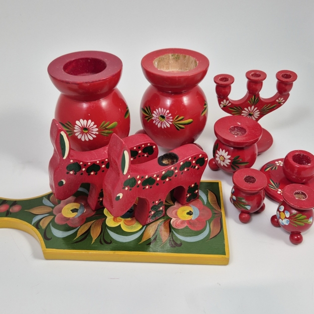 Kulljusstakar 5st , 2st träljusstakar åsna Lite svedd. , 1st liten serveringsbräda , liten kandelaber