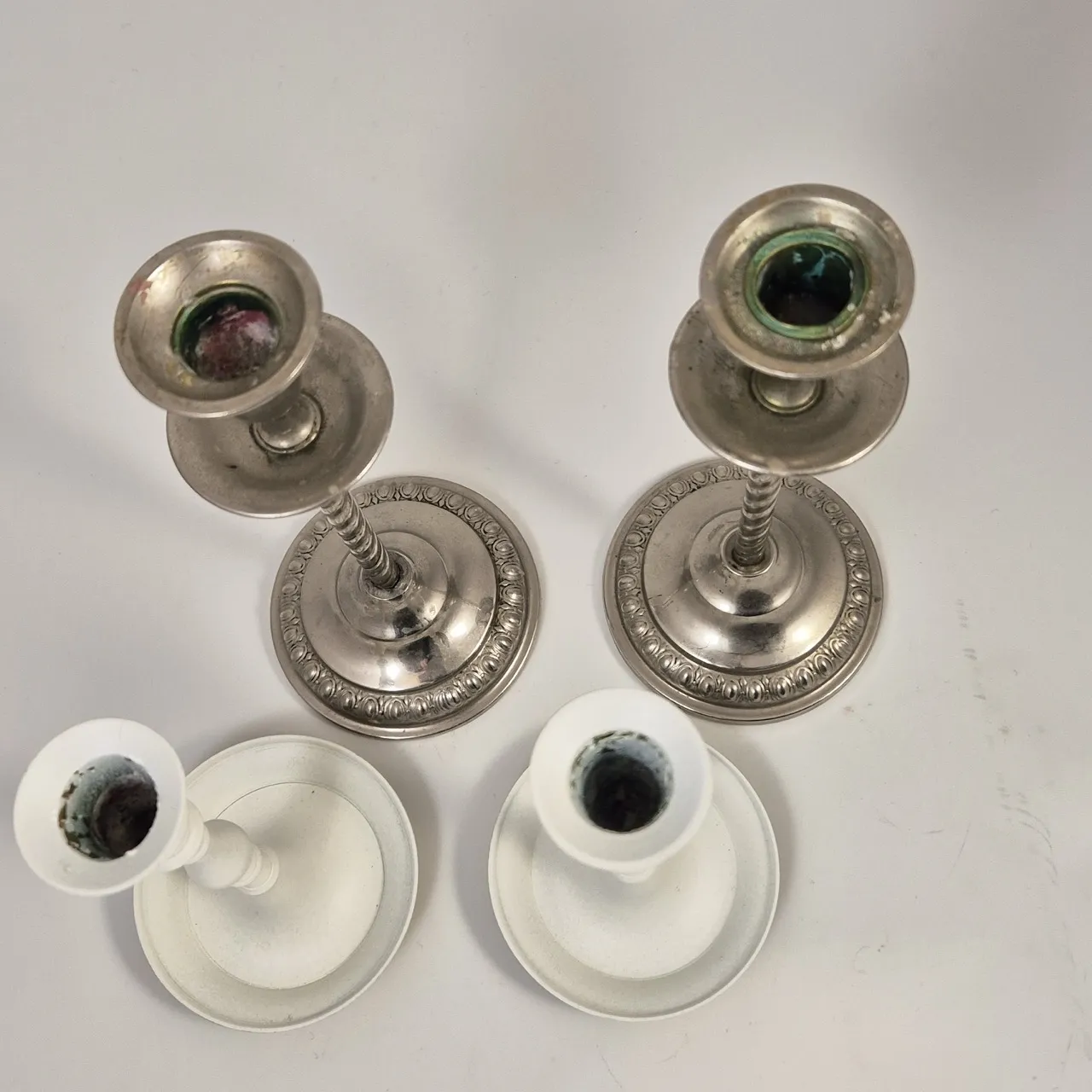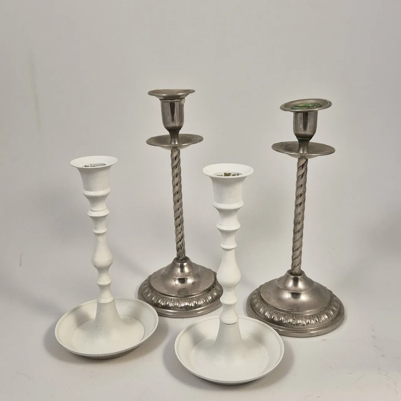 2st vitmålade ljusstakar. mässing under