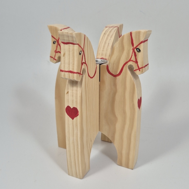 Ljusstake i trä med hästar H.18cm