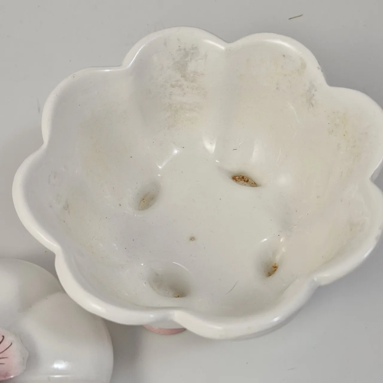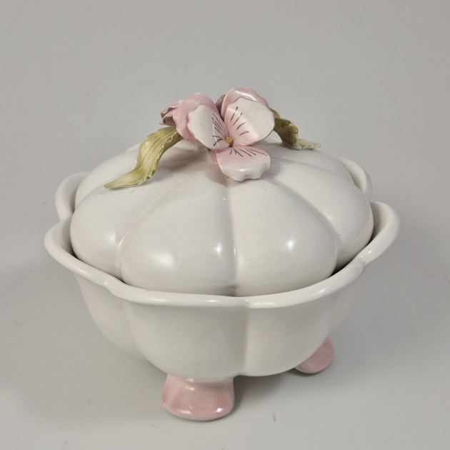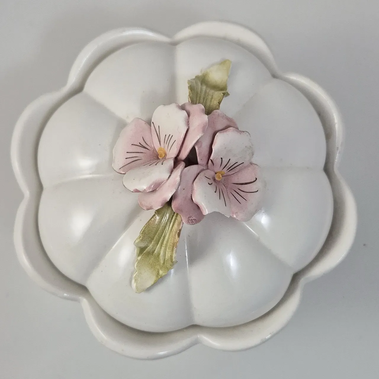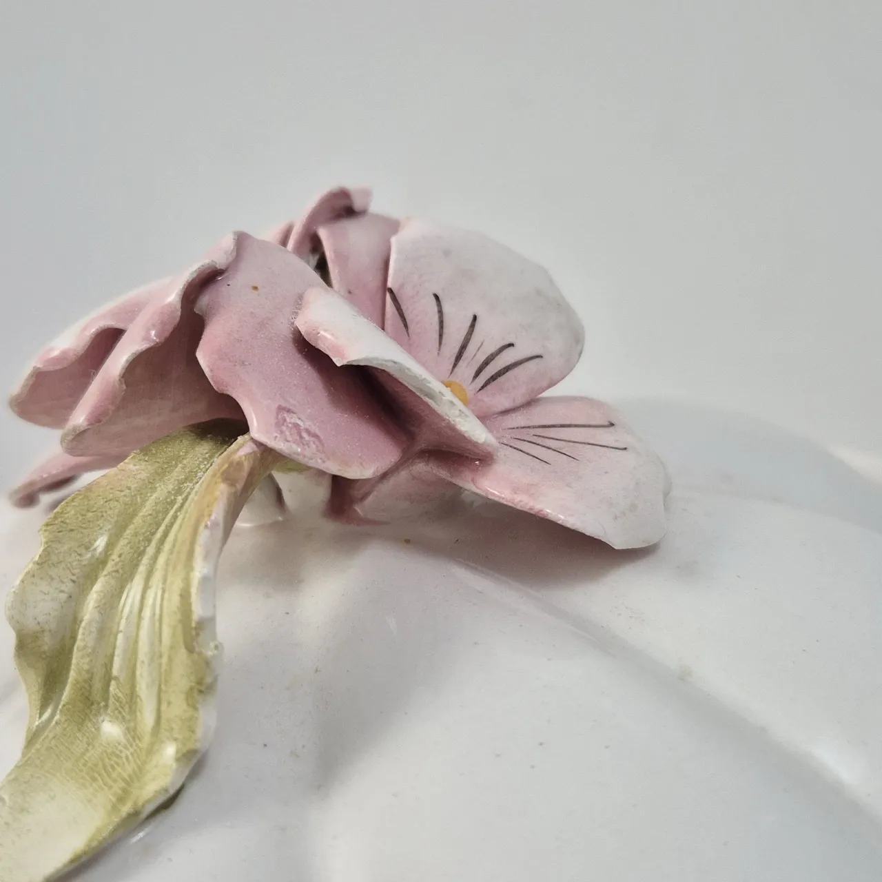 Lockask i porslin, ett skadat blomblad. D.16cm