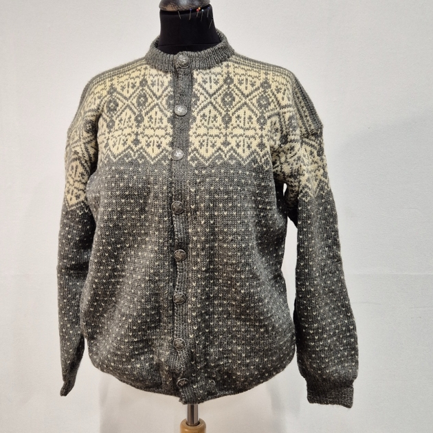 Lusekofta i ull. Gulnad i det vita garnet . Storlek ca M/L