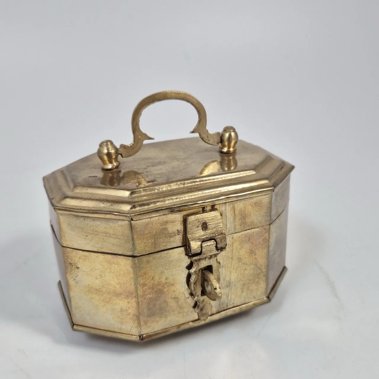Liten gullig kista i mässing H. ca 7.5cm