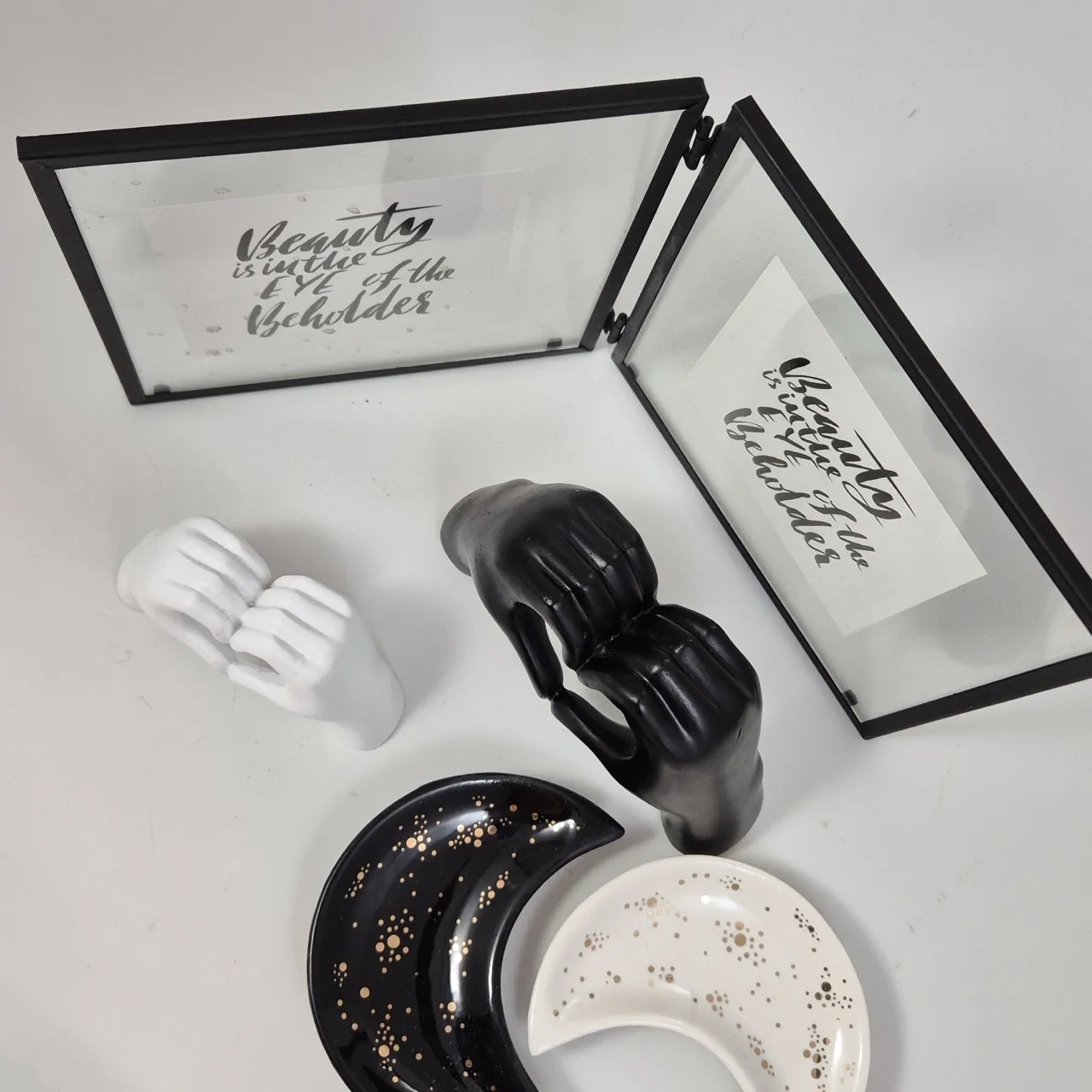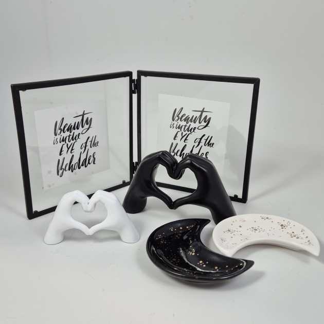 2st mån-fat , ram vikbar det går att byta bilder 2x 15x15cm., 2st hjärthänder