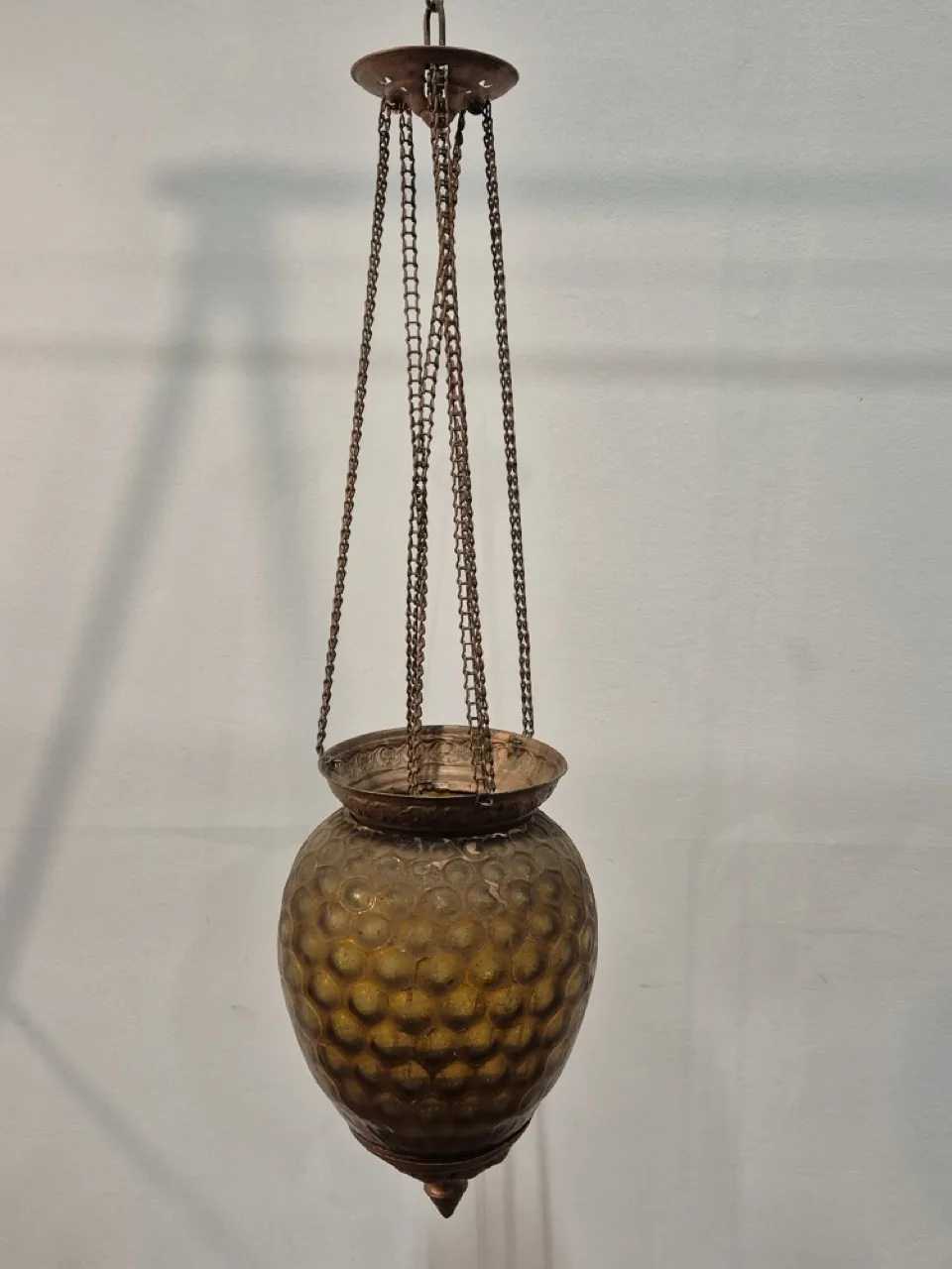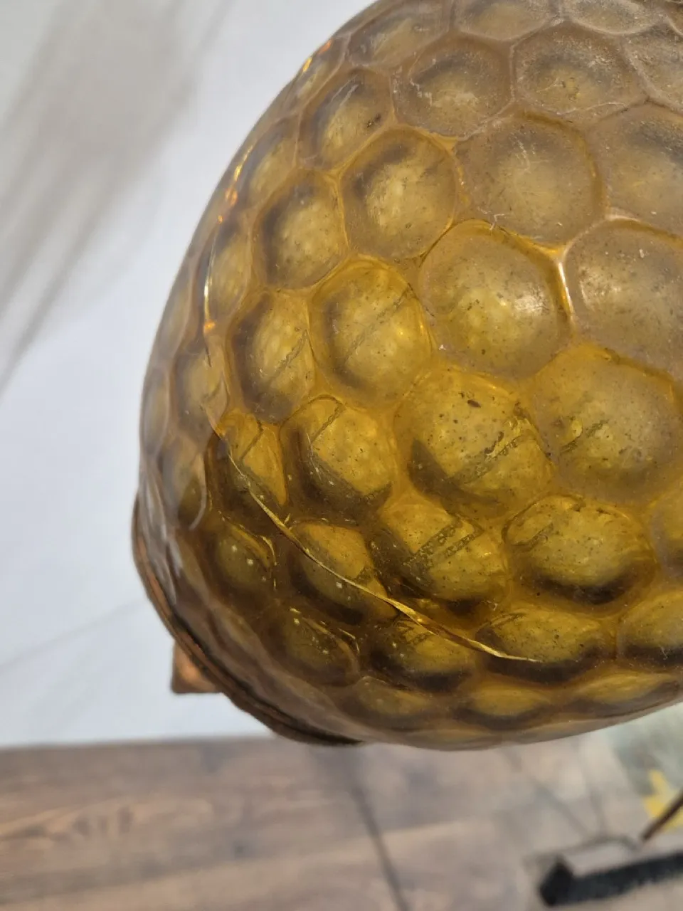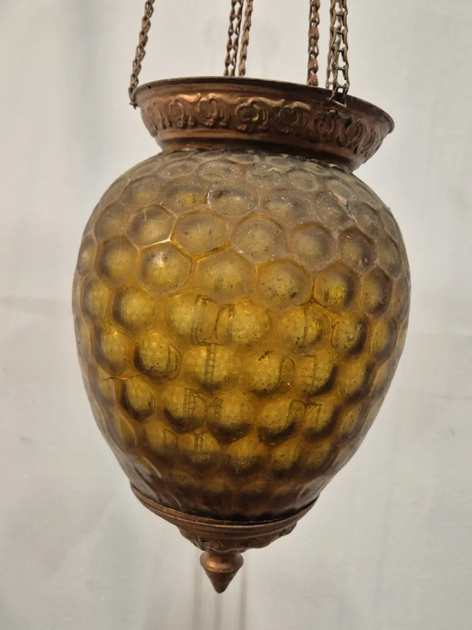 Månskenslampa . Spricka i glaset , saknar oljebehållare, behöver en diskning . Höjd på glaskupan ca 20cm .