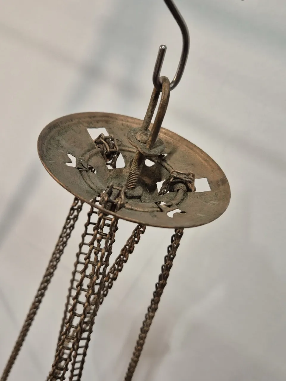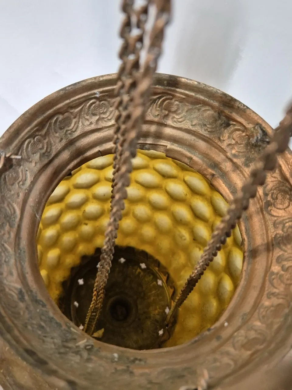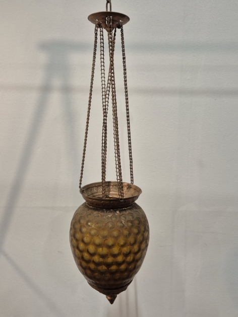 Månskenslampa . Spricka i glaset , saknar oljebehållare, behöver en diskning . Höjd på glaskupan ca 20cm .