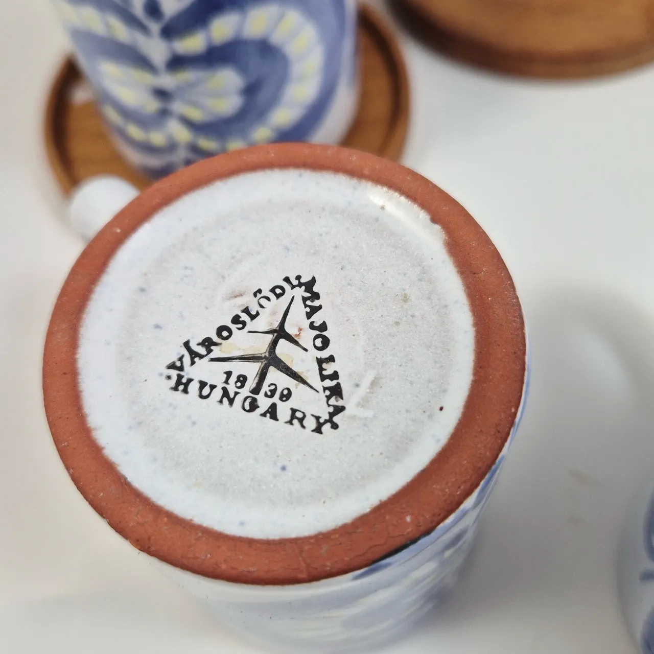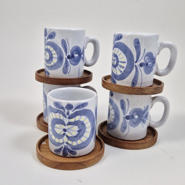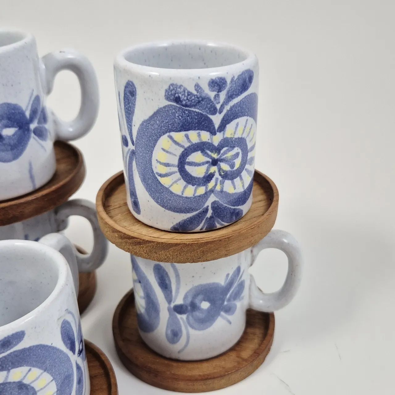 Espresso/glögg koppar majolika med träfat . 5st H. 6st