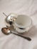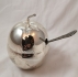 Marmeladburk i äppelform, glasskålen går att peta upp och diska. skiftningar i metallen