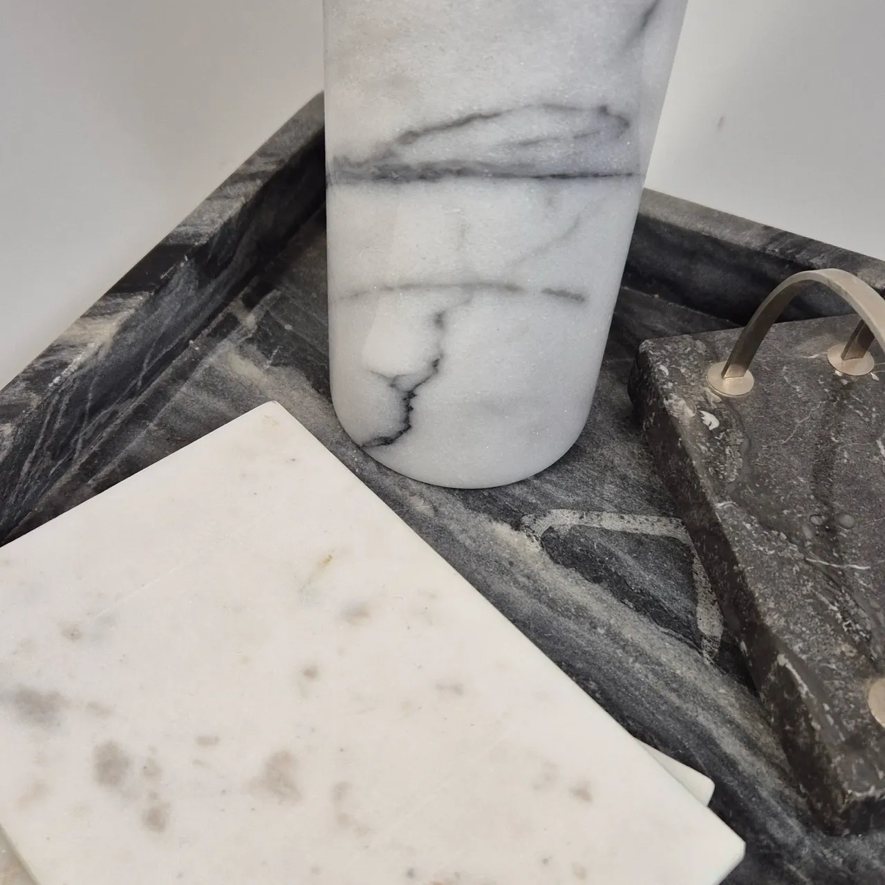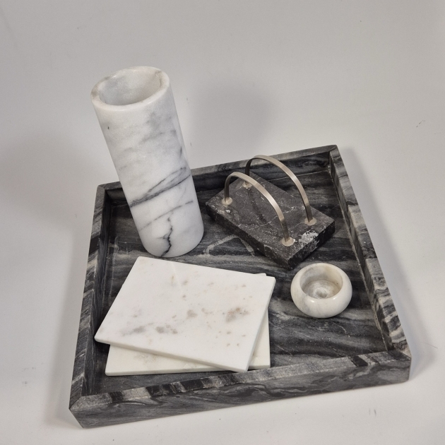 Stor marmorbricka 30x30cm , ljusstake, brevställ, 2st smörgåsunderlägg . Allt i tjusig sten :)