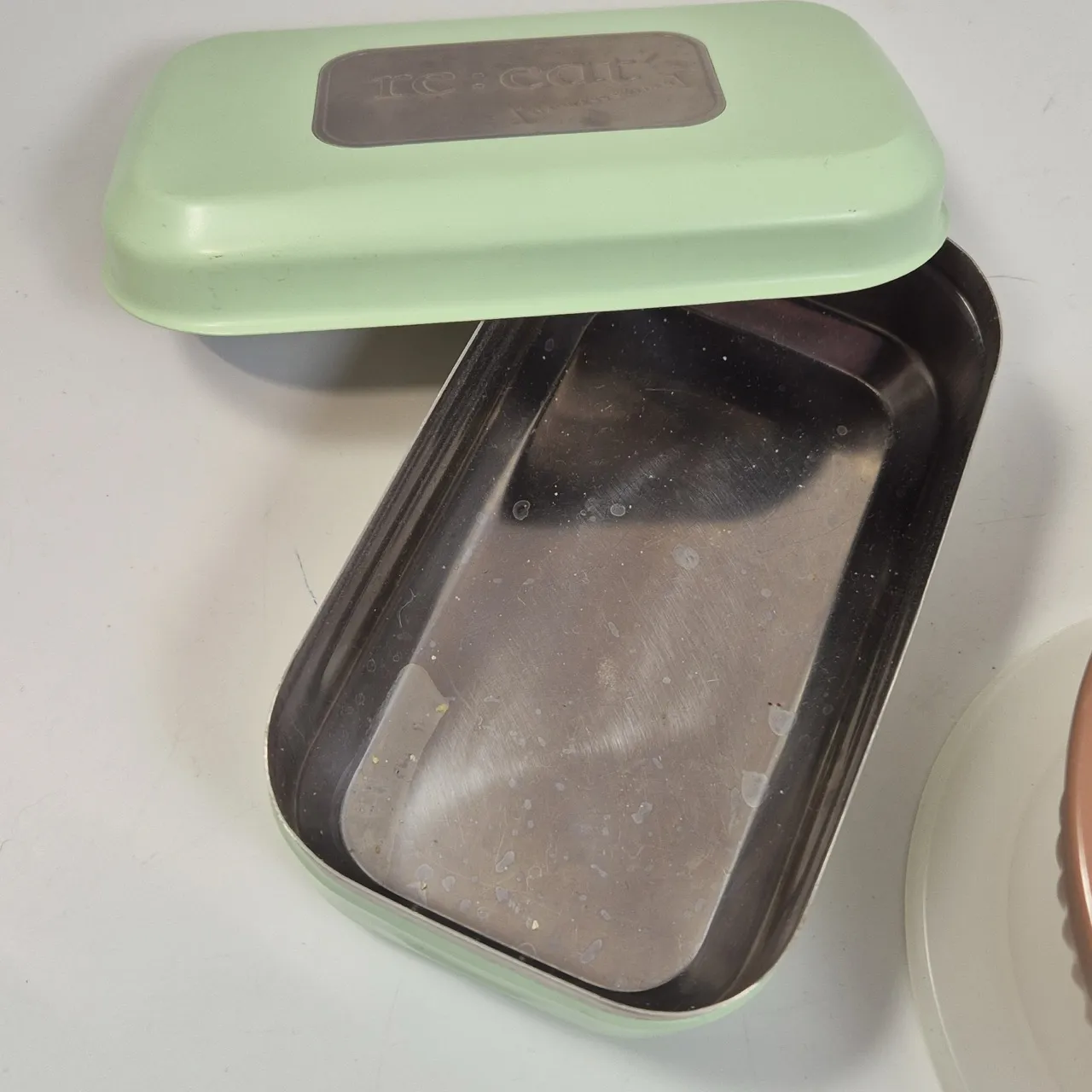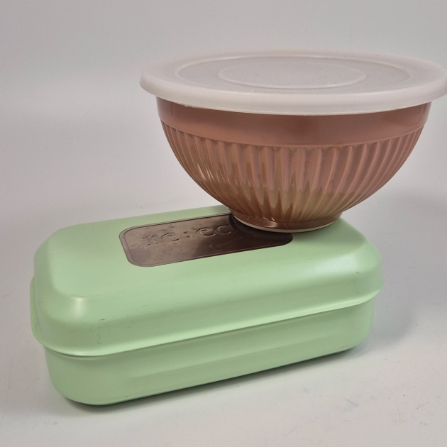 Melaminskål med plastlock 14.5cm, matlåda metall