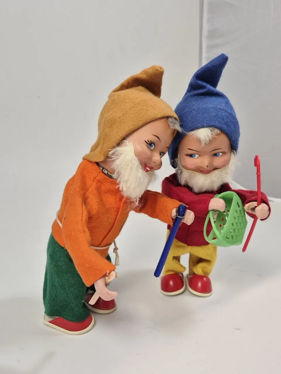2st mekaniska tomtar från Tyskland . Den orangea har trasiga stavar , nackproblem och den blå har svårt att hålla sig upprätt. H ca 18cm