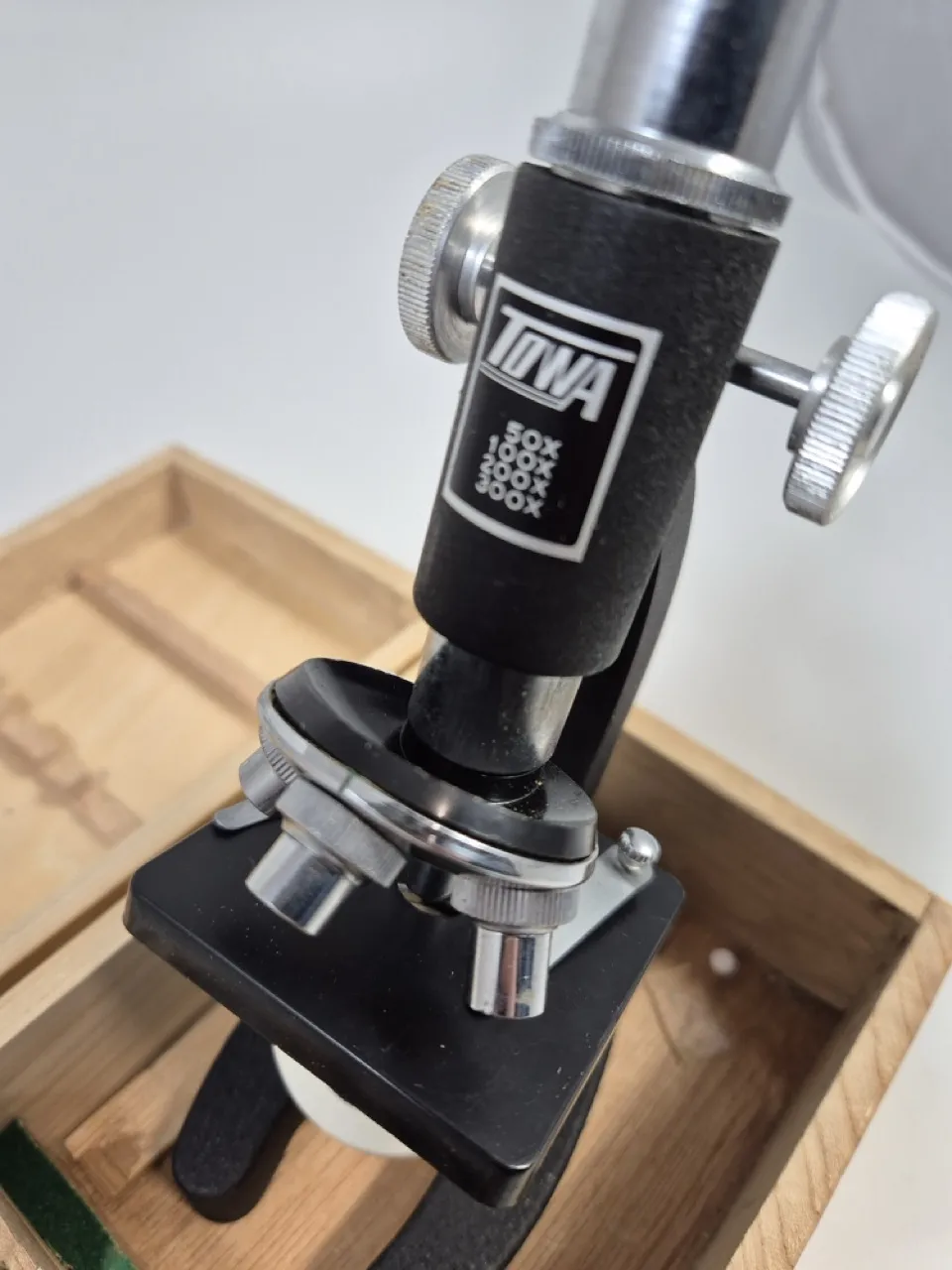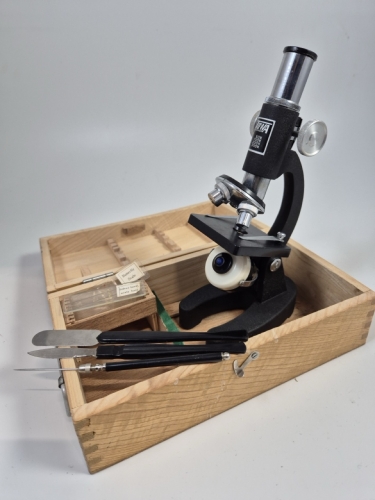 Microskop i trälåda
