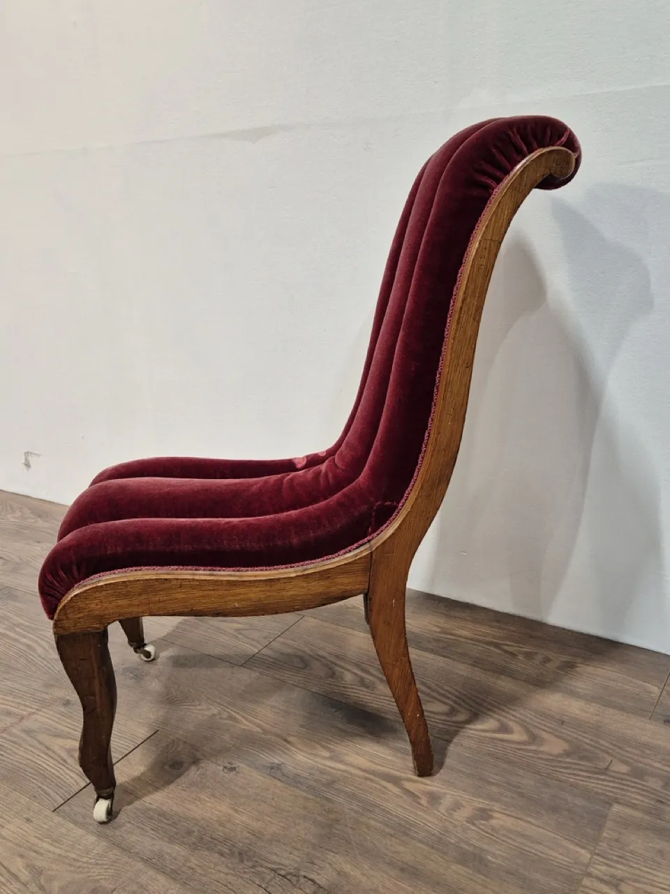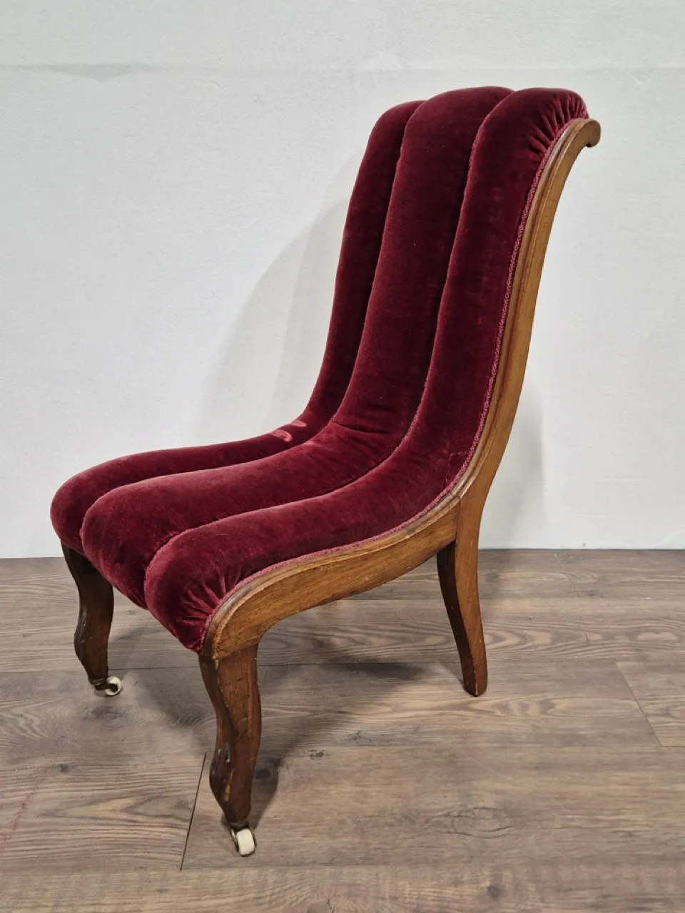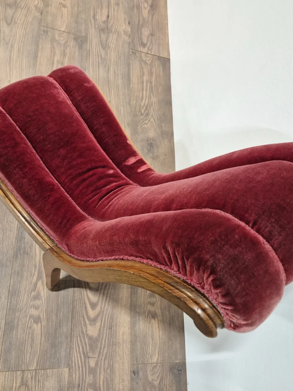 Bekväm och nätt fåtölj. Sammeten är tillplattad på 2 ställen. Totalhöjd 85cm , sitthöjd ca 38cm