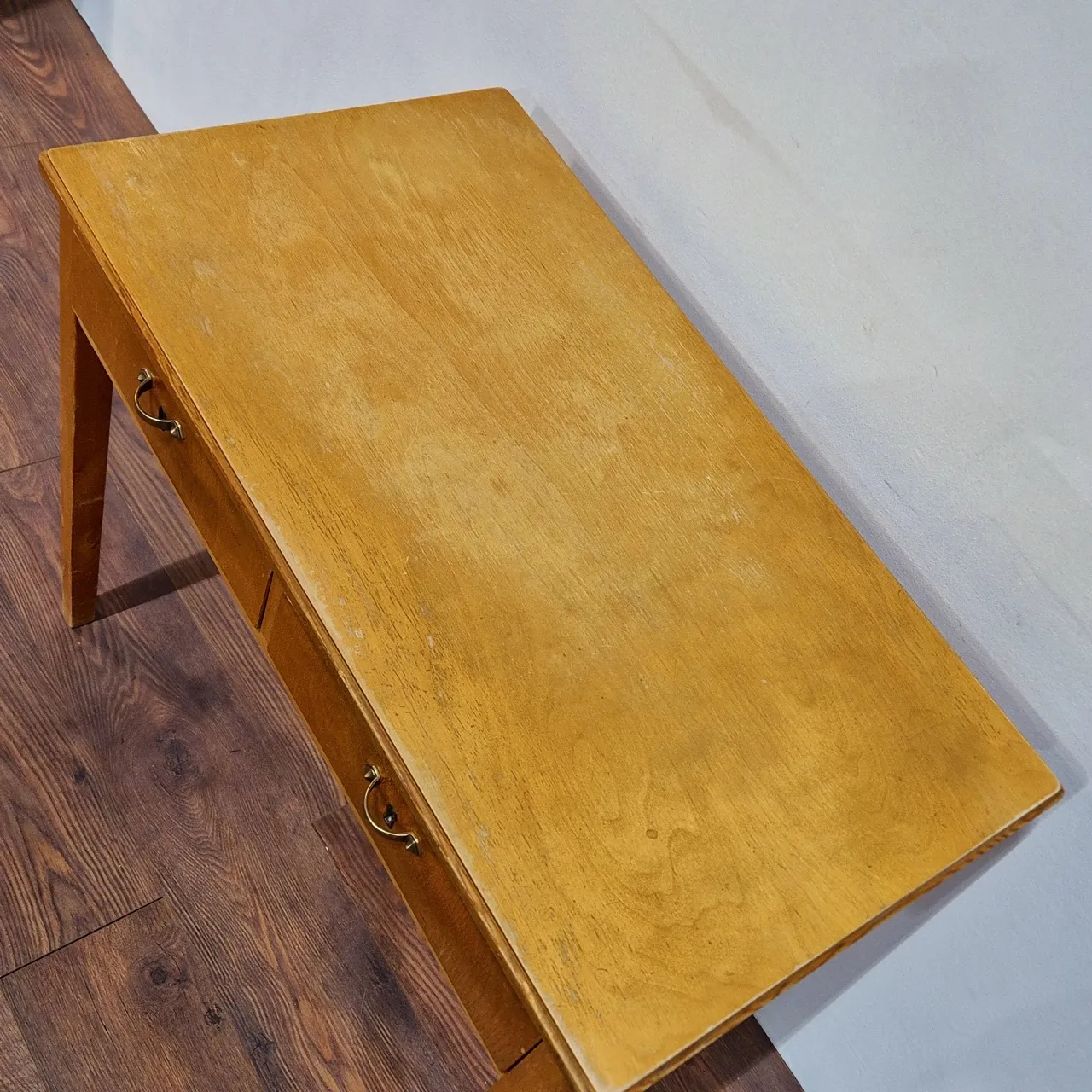 Nätt skrivbord. Behöver oljas. H.76cm 90x50cm