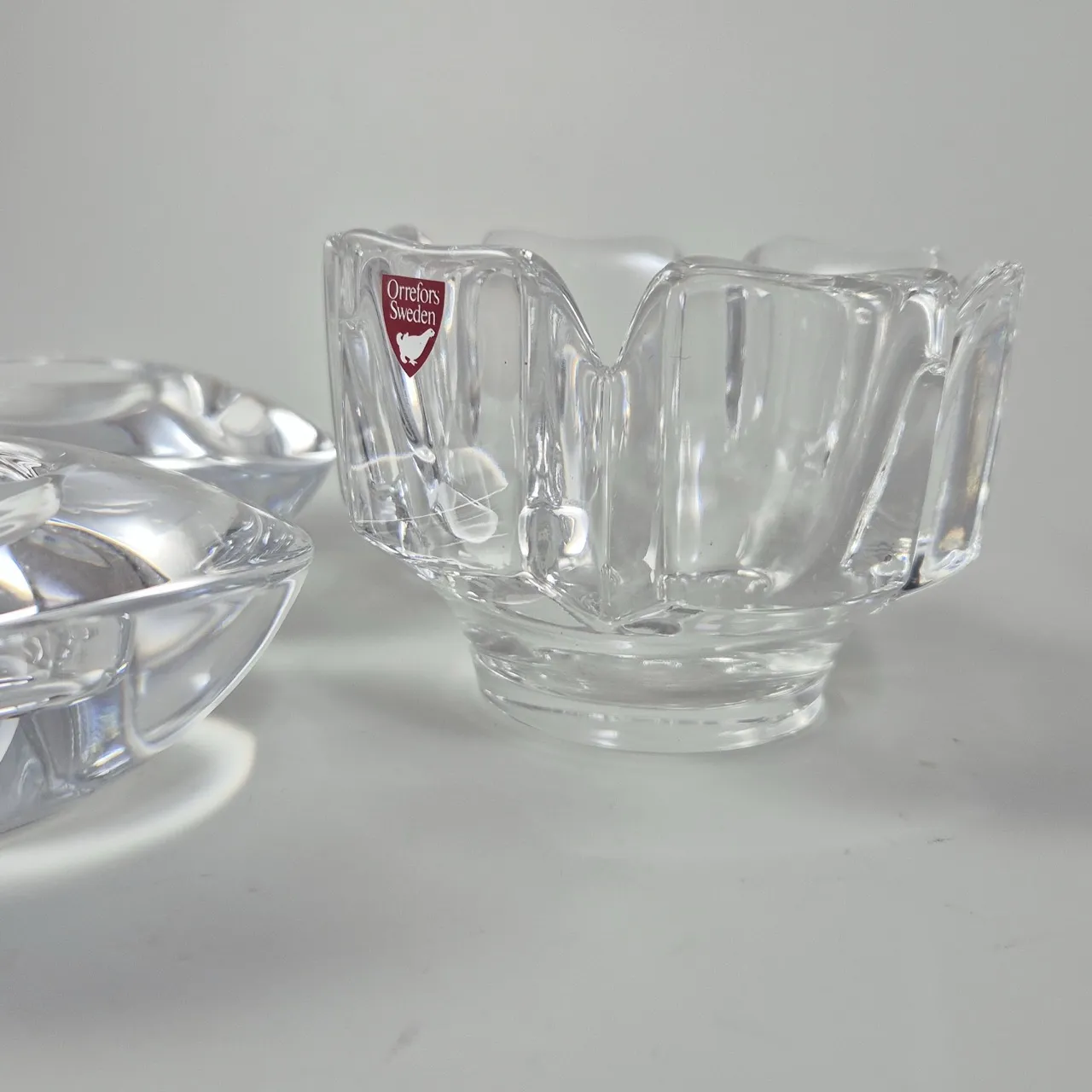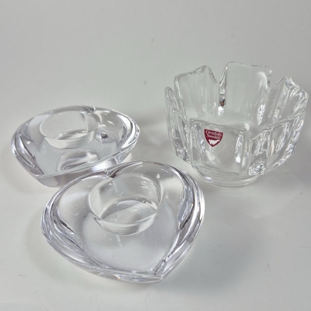 Orrefors, skål D.10cm . 2st ljuslyktor.