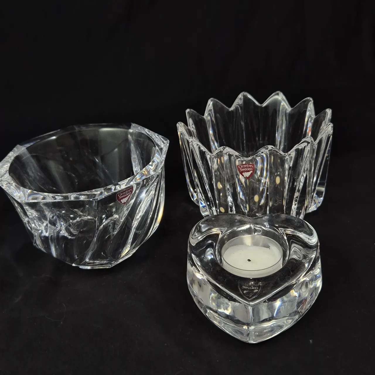 Orrefors, 2st olika skålar, 1st ljushjärta
