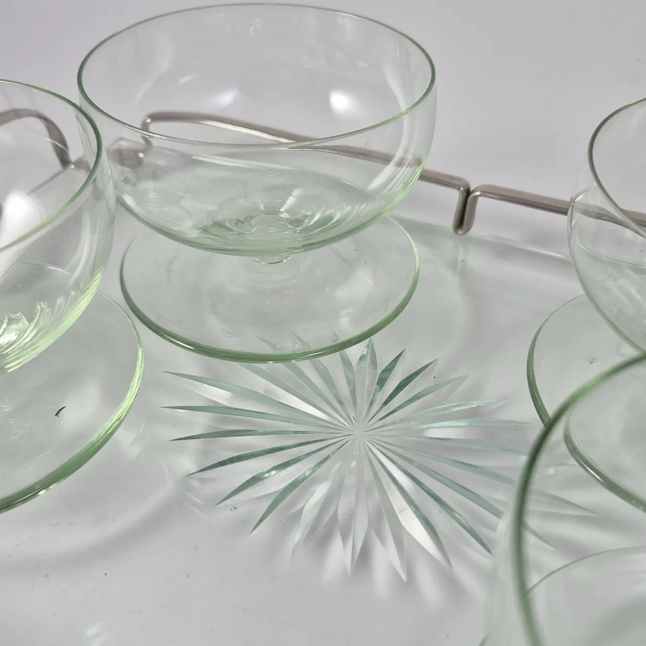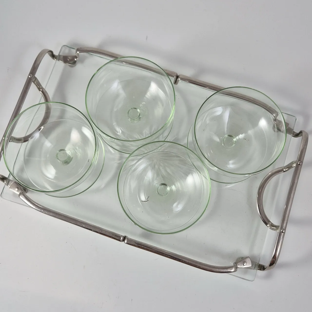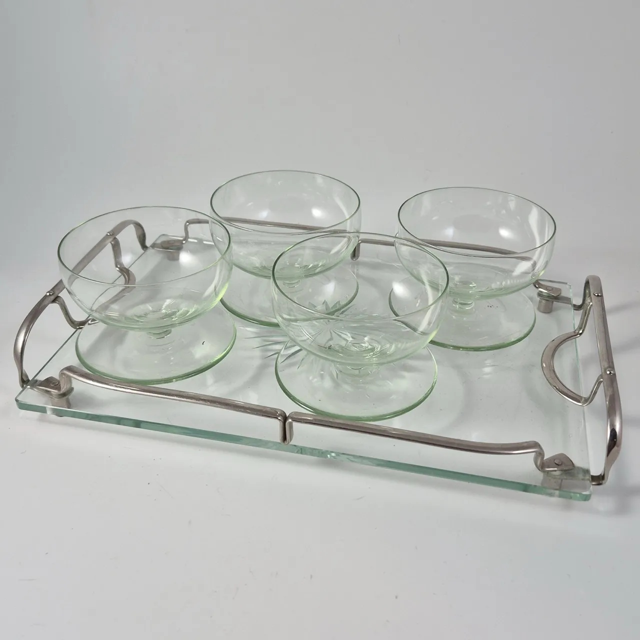 4st dessertskålar i svagt grönt glas , 1st ostbricka 32x20.5cm