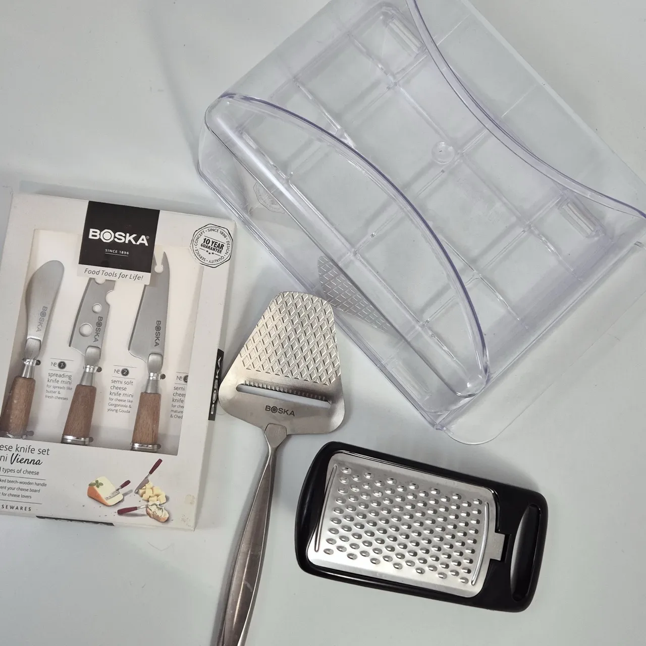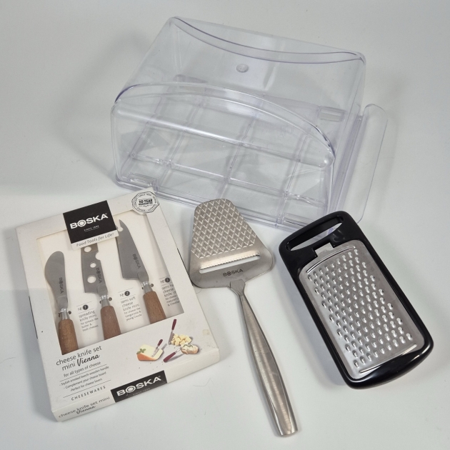 Ostkupa plast, osthyvel, ostknivar, ostrivare med behållare