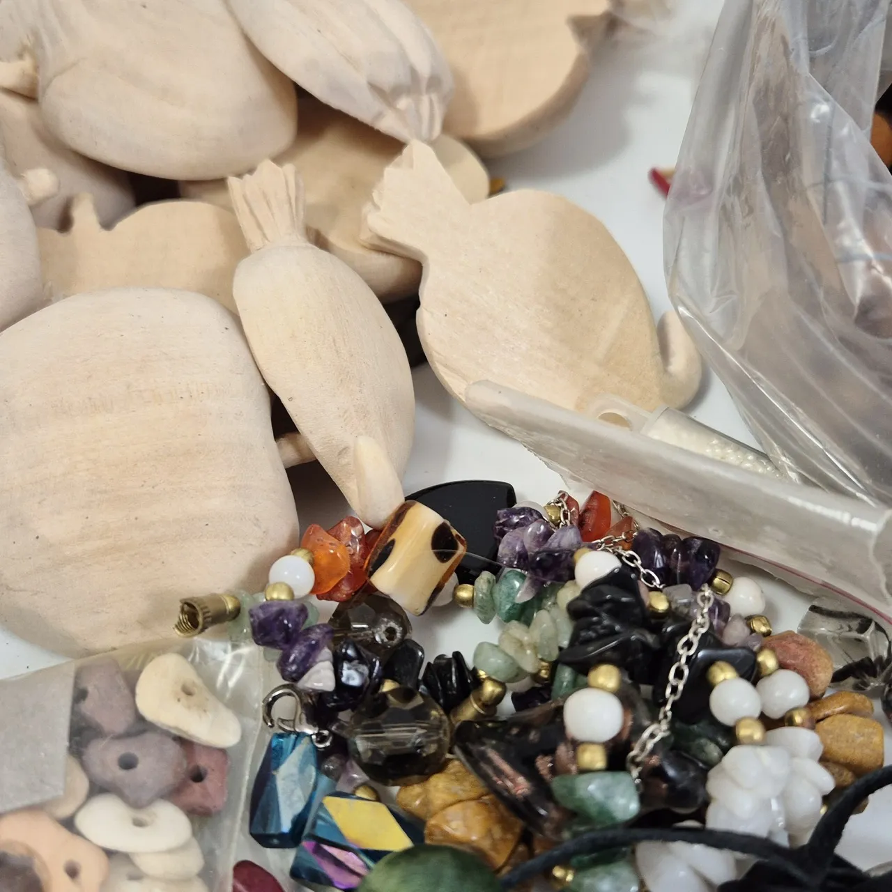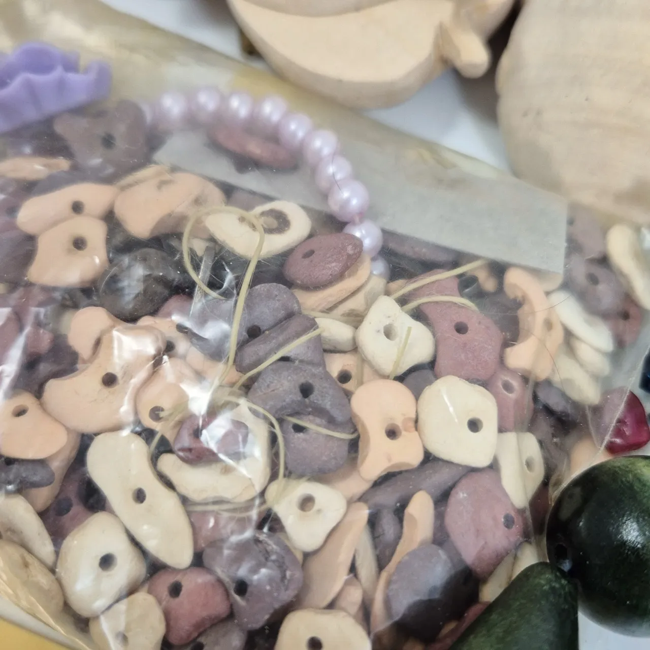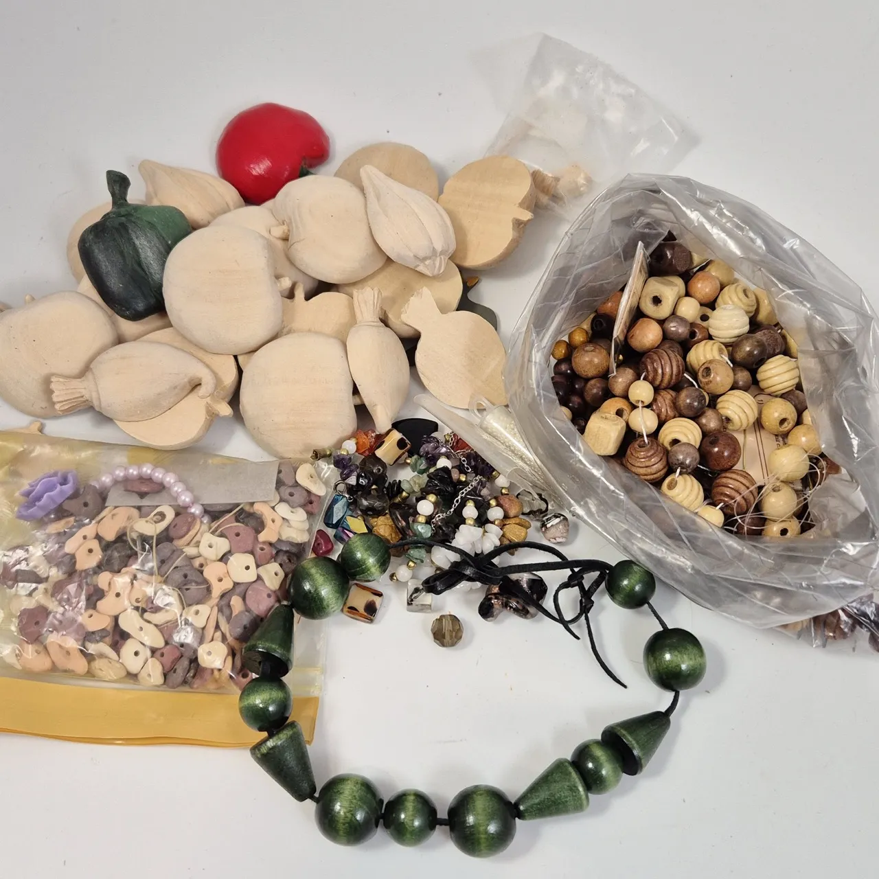 Träfrukter/grönsak. Träpärlor, stenpärlor