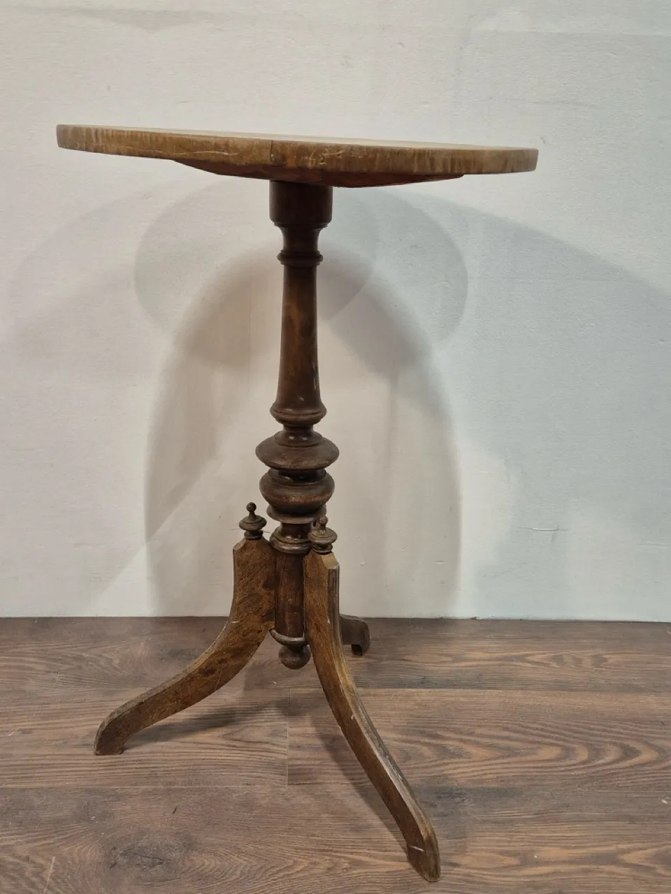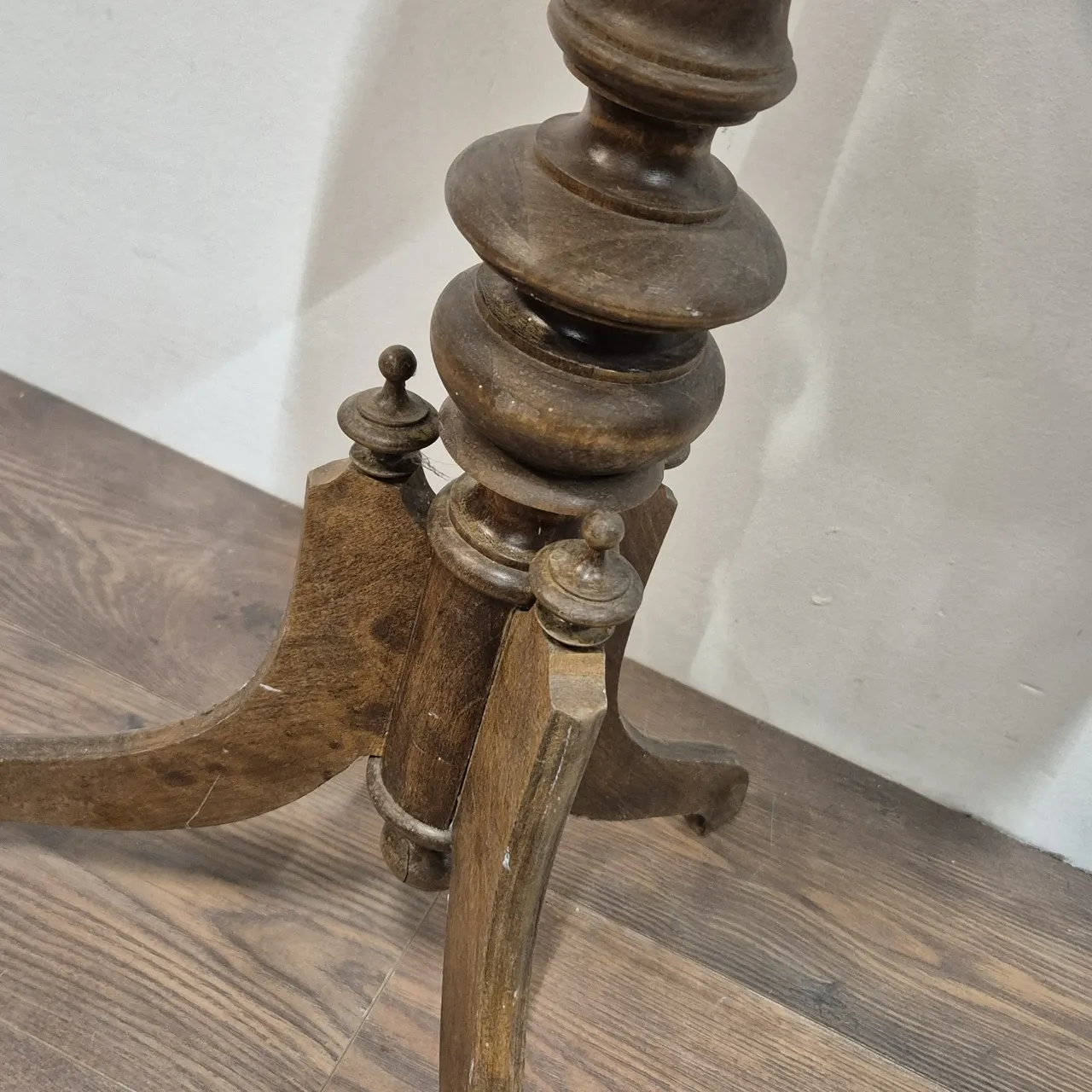 Smäckert pelarbord. Behöver lite kärlek. H.76cm D.47cm