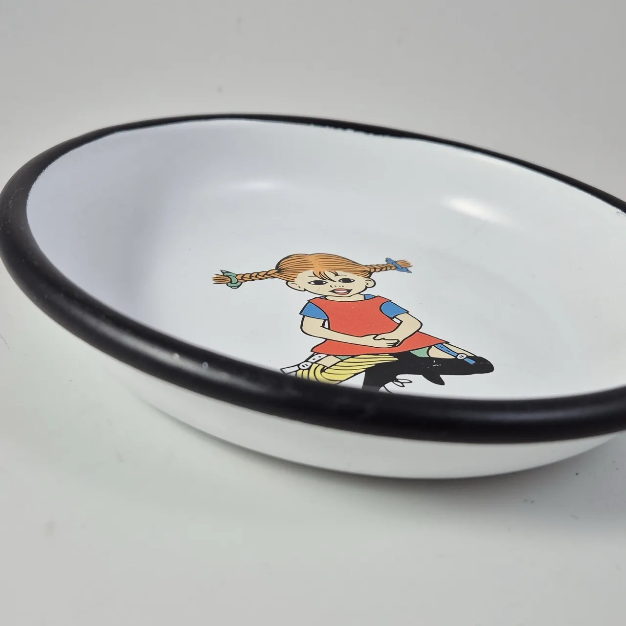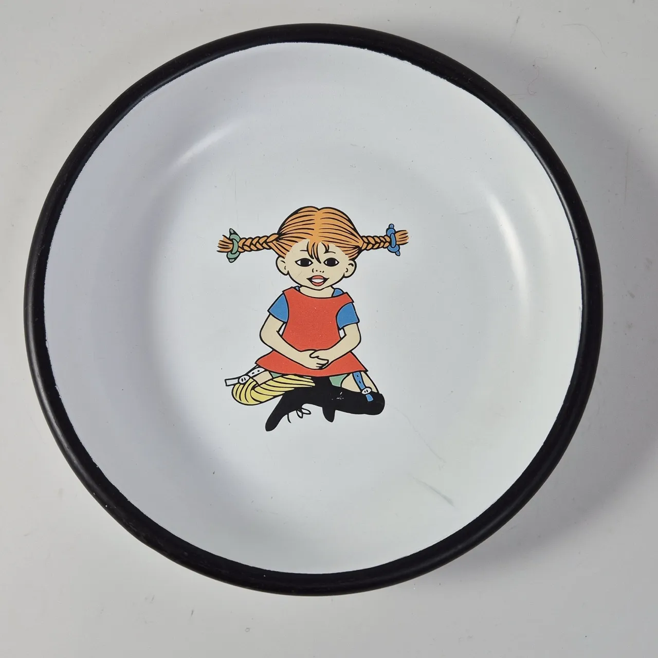 Pippi Långstrump emaljerad djup tallrik D.20cm. Lite matt