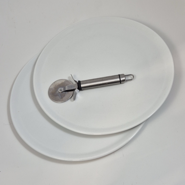 2st stora pizzatallrikar utan ful dekor. 1st slicer