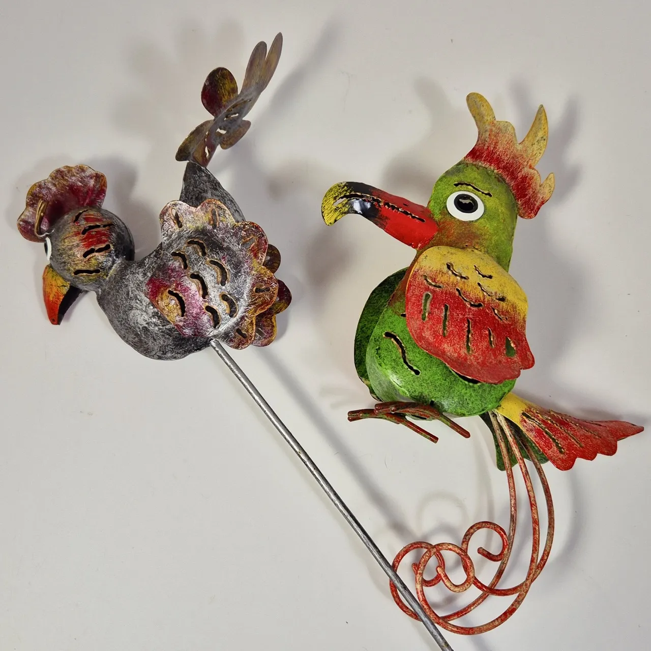 2st plåtfåglar. Höjd på den utan pinne ca 25cm