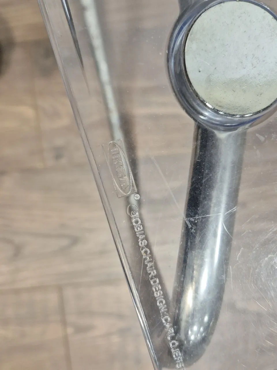 2st plexiglasstolar Ikea, rost på benen . Repor