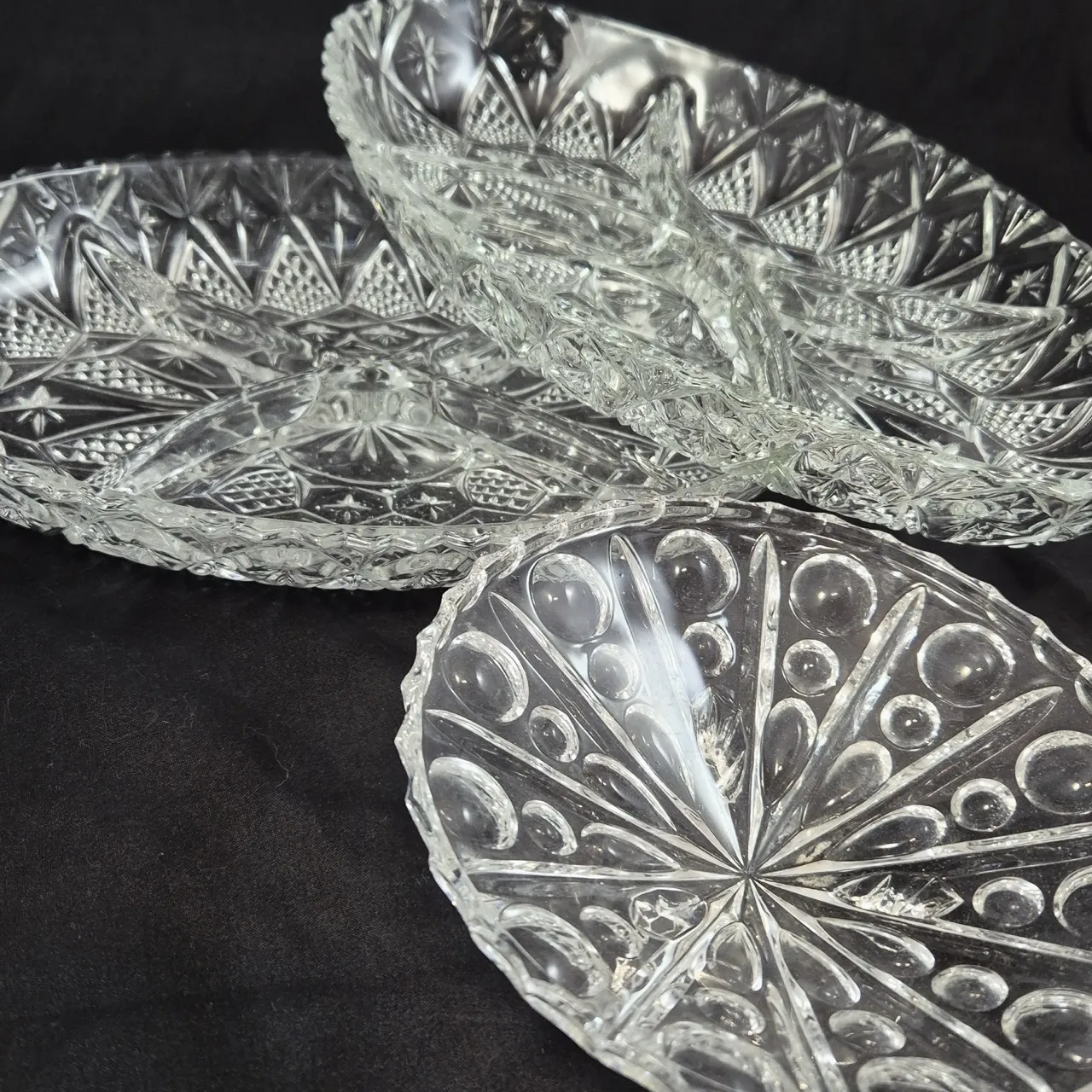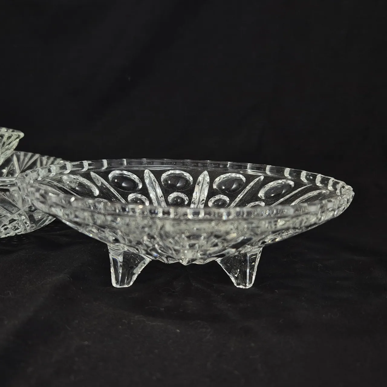 2st plocktallrikar (en har nagg), 2st litet fat med fötter D.15cm