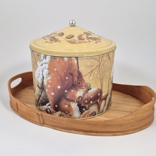 Stor plåtburk Ekorre, kan ha nån bula D.22cm