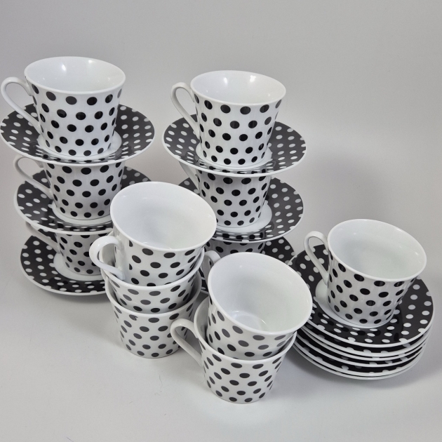 Prickiga kaffekoppar H. 6.5cm med fat 12st.