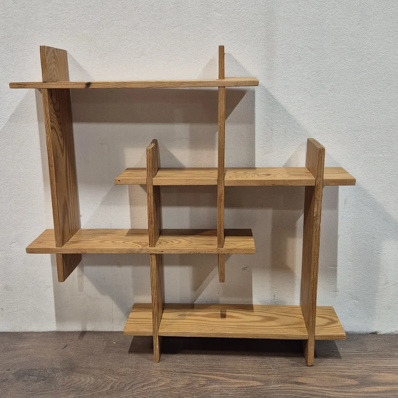 Prylhylla . Saknas en bit trä på ett hörn. 41x41cm
