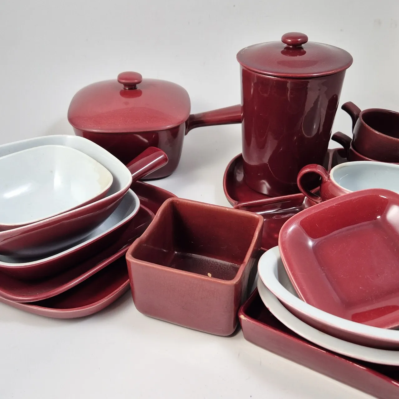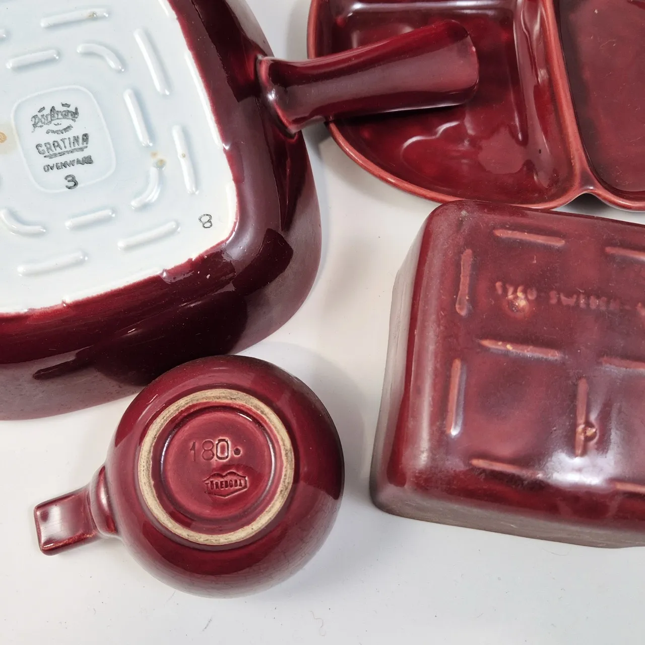 Rörstrand Gratina, karott, såssnipa , 2st små formar, 2st små fat, skålar, ugnsform med handtag. uppläggningsfat av olika soter .