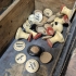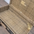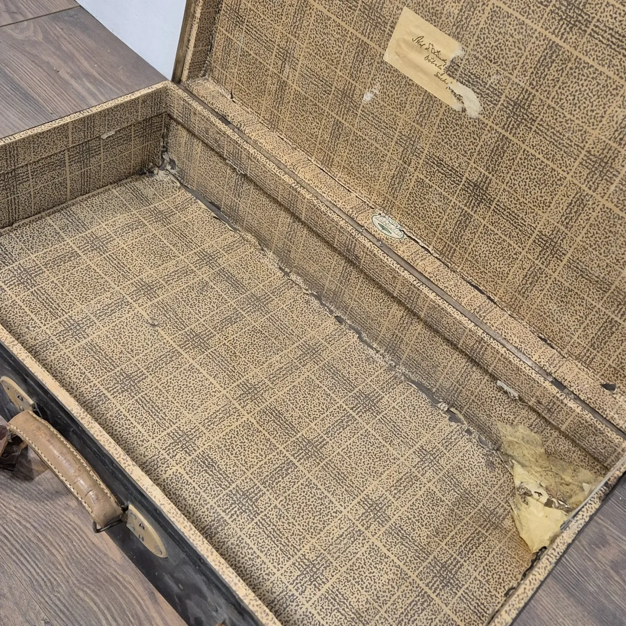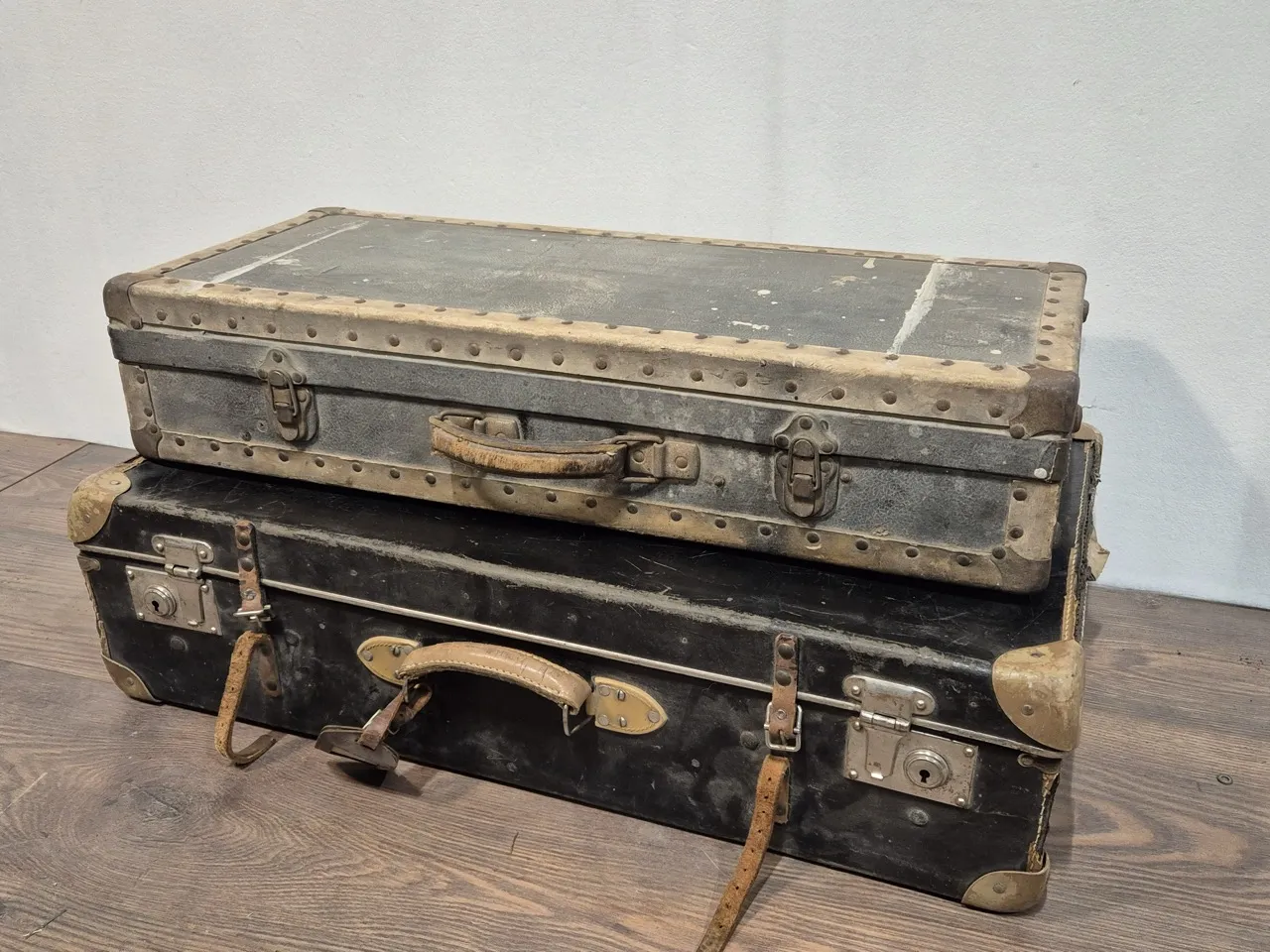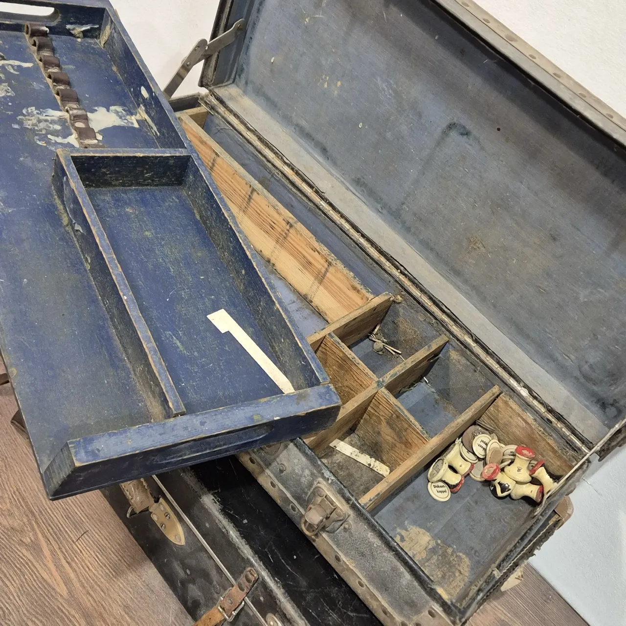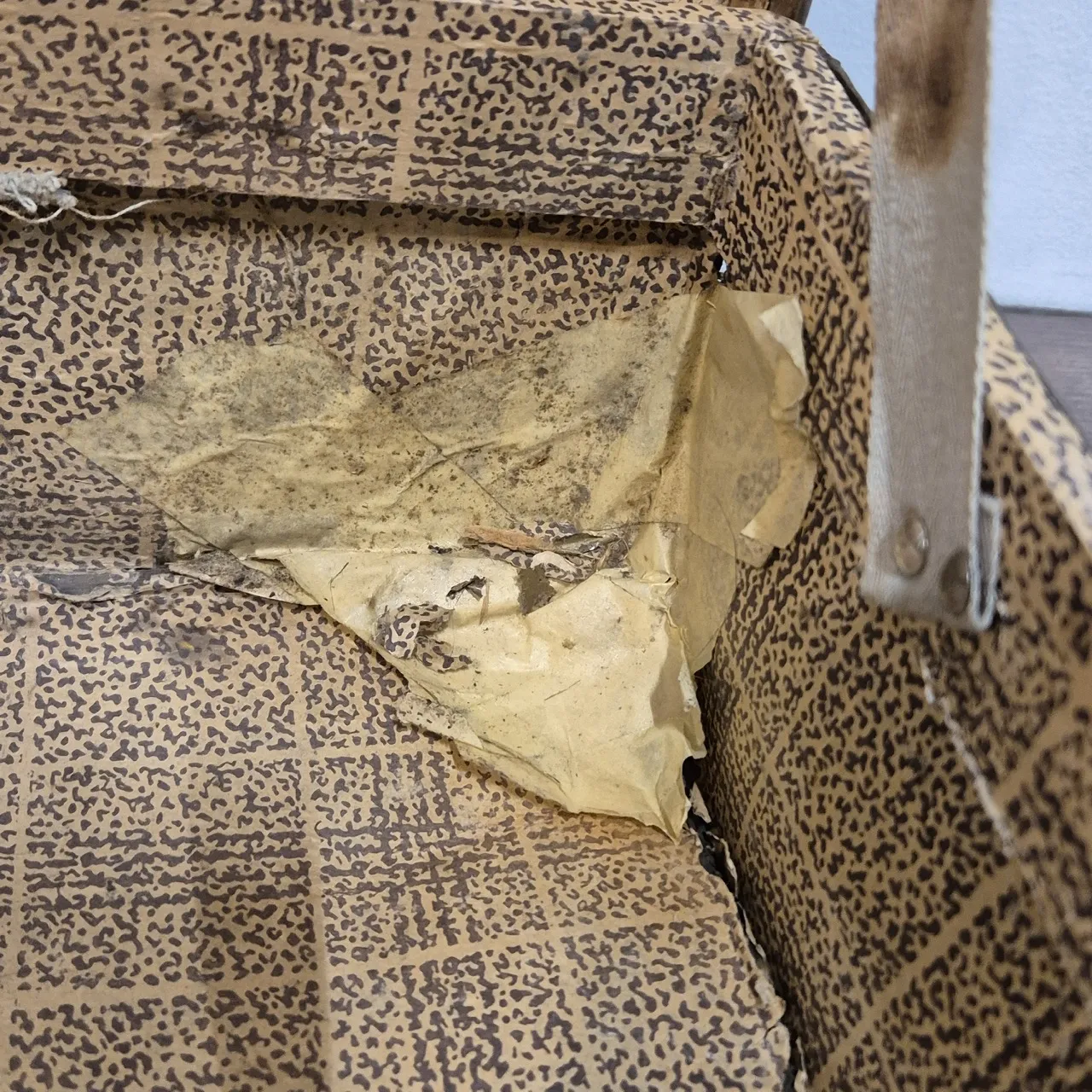 Resväska mest för prydnad eftersom den är så sliten. Väska med fack (orgelknappar ingår) 68x28x13cm