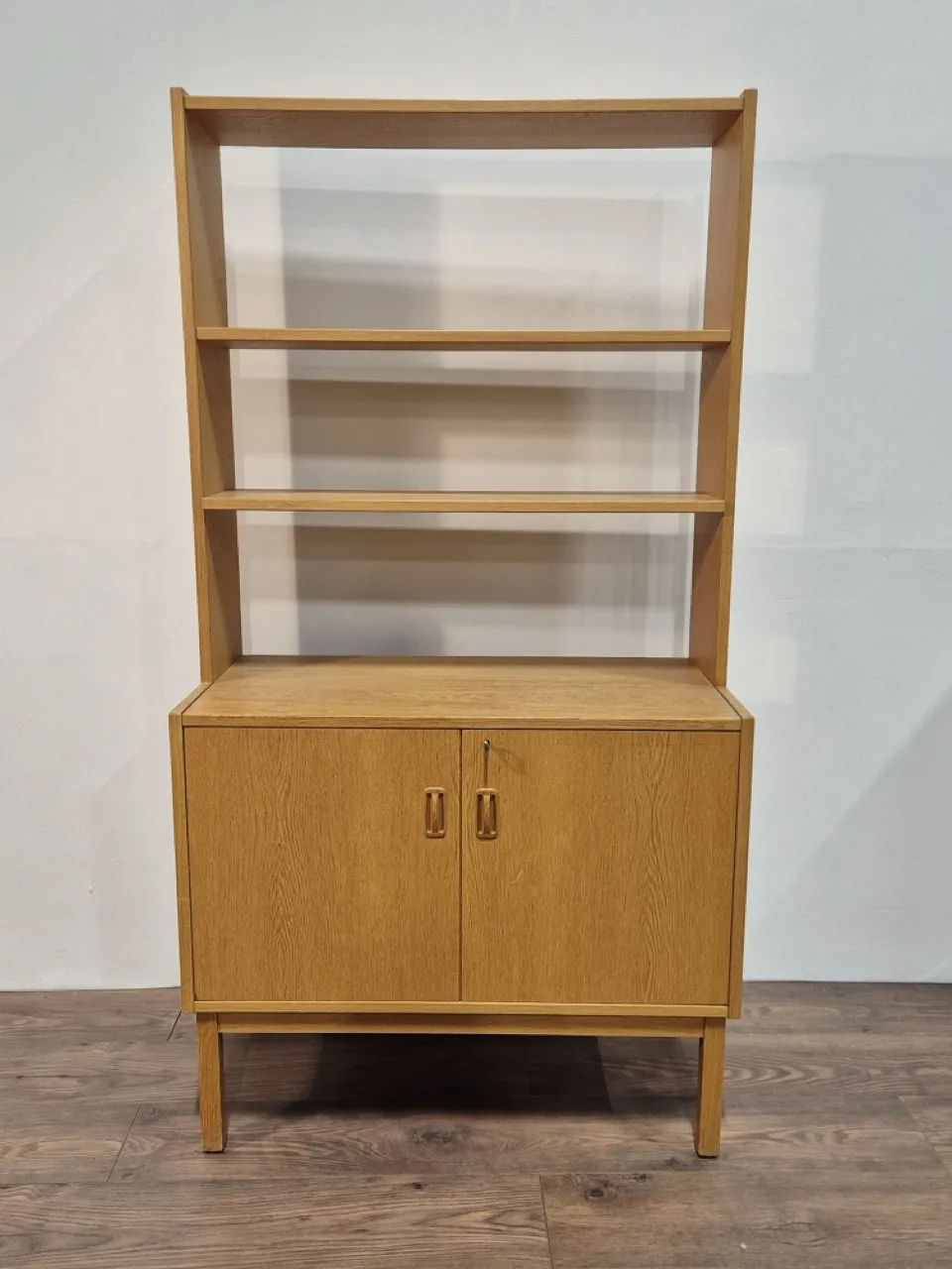 Retro bokhylla. Det finns ett hyllplan i skåpet men saknar pluppar. H.161cm 85x42cm